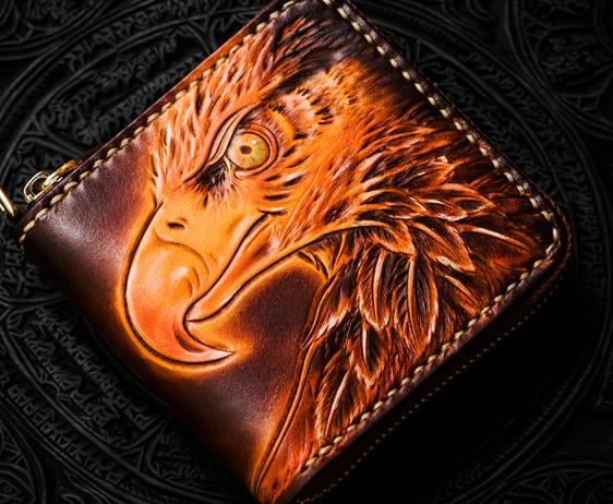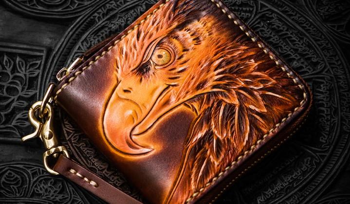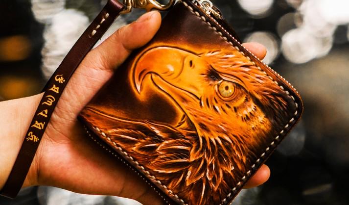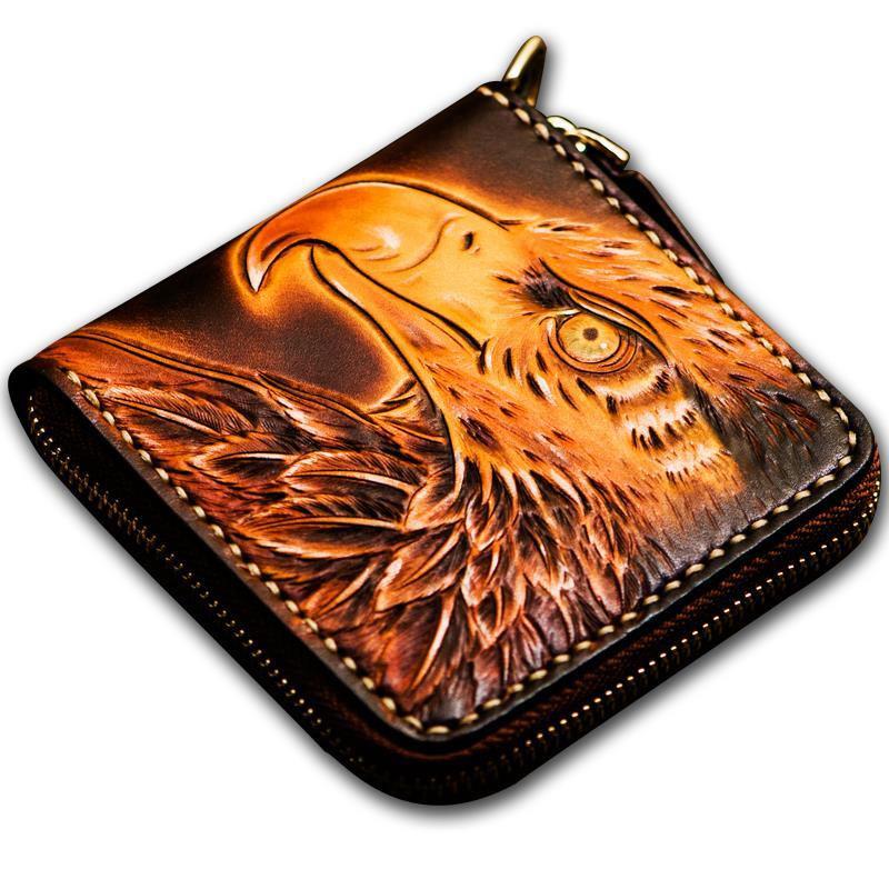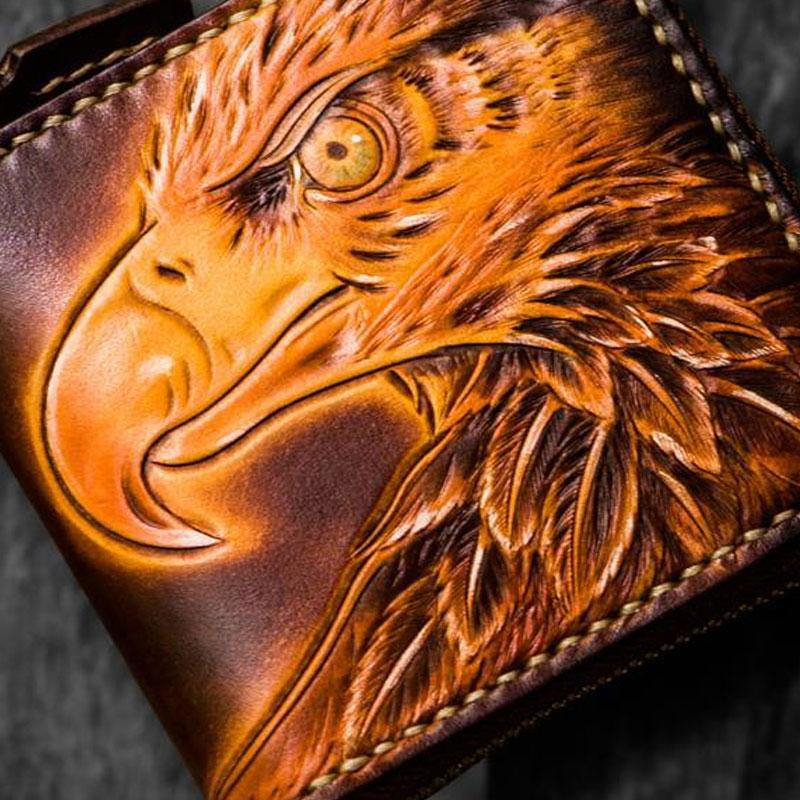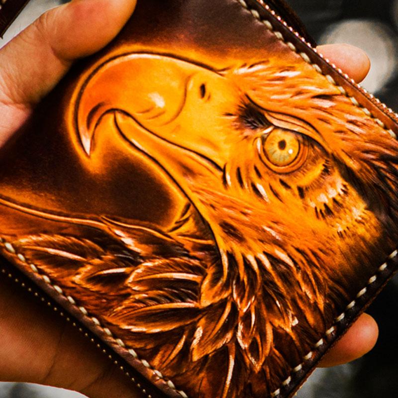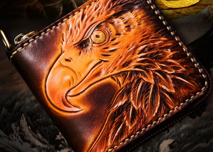 Style: Handmade Leather Tooled Eagle Mens billfold Wallet Cool Leather Wallet Slim Wallet for Men