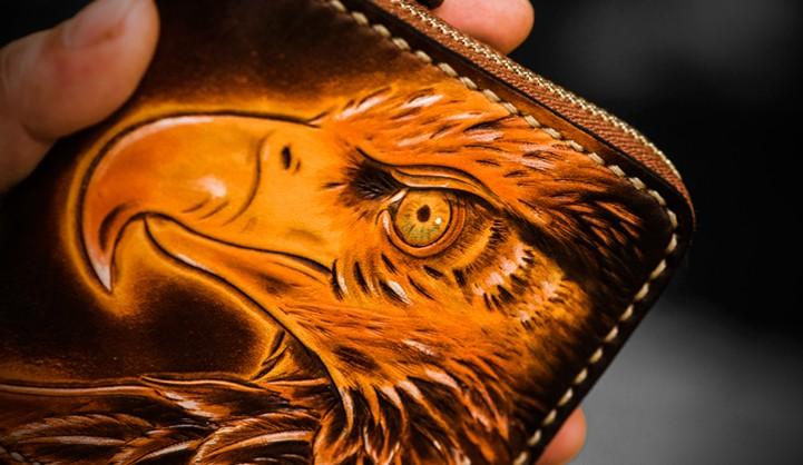Design: Handmade Leather Tooled Eagle Mens billfold Wallet Cool Leather Wallet Slim Wallet for Men