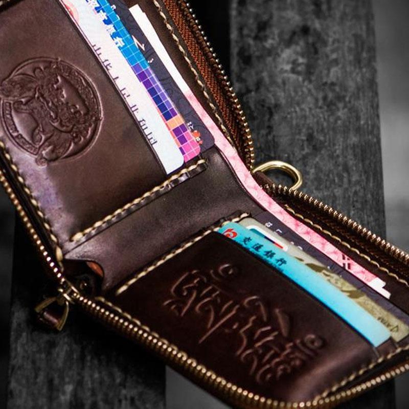 Slots:?1?full size bill slot,?6 card holders, 1 Zipper slot