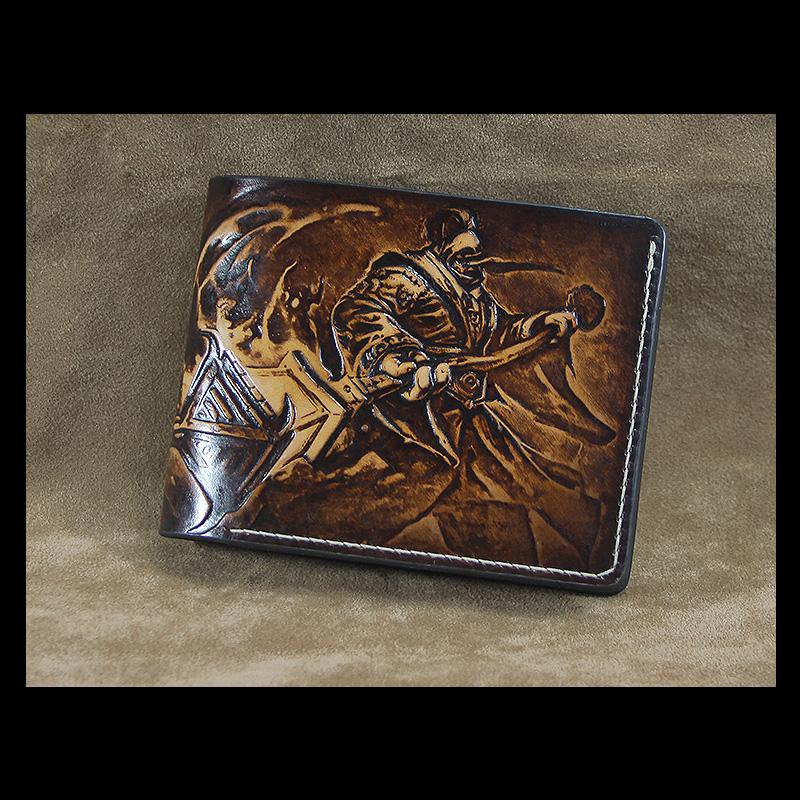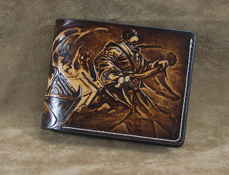 Style: Handmade Leather Tooled Jax Grandmaster at Arms League of Legends Mens billfold Wallet Cool Leather Wallet Slim Wallet for Men