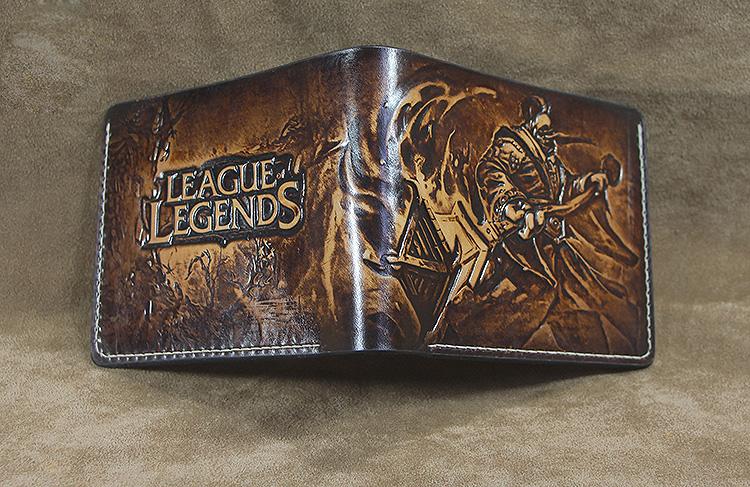 Design: Handmade Leather Tooled Jax Grandmaster at Arms League of Legends Mens billfold Wallet Cool Leather Wallet Slim Wallet for Men