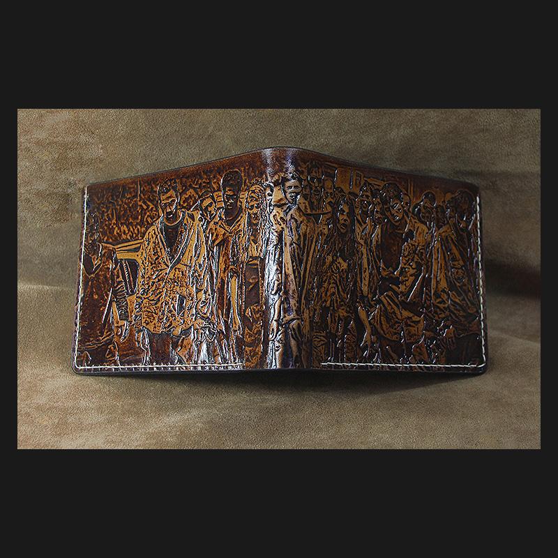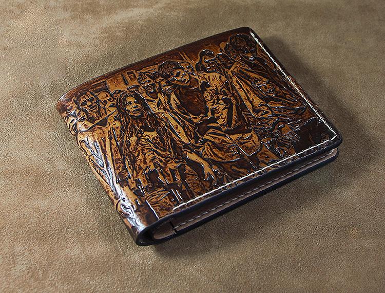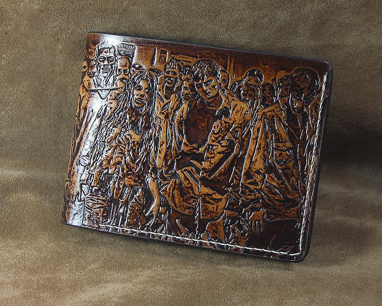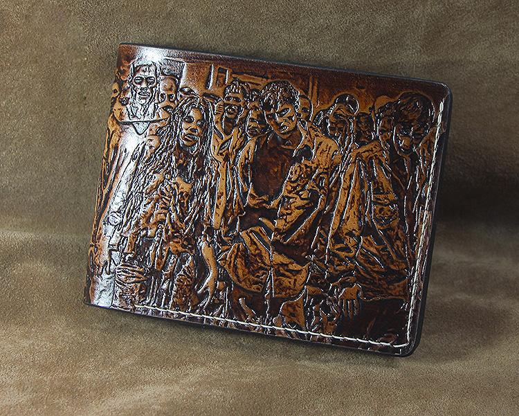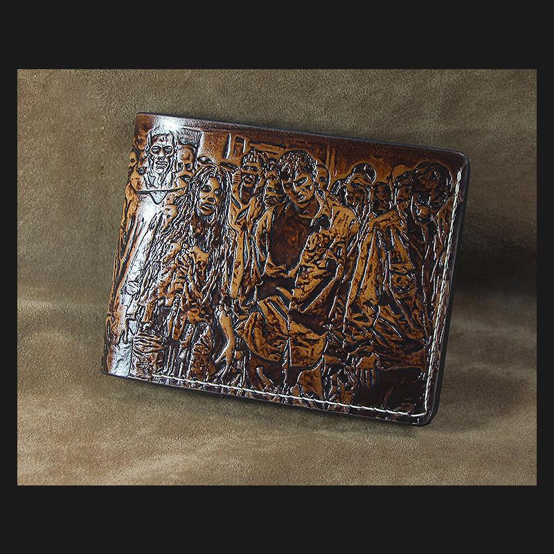 Design: Handmade Leather Tooled TheWalkingDead Mens billfold Wallet Cool Leather Wallet Slim Wallet for Men
