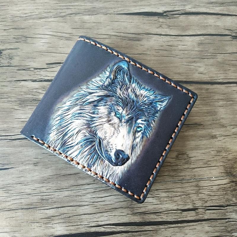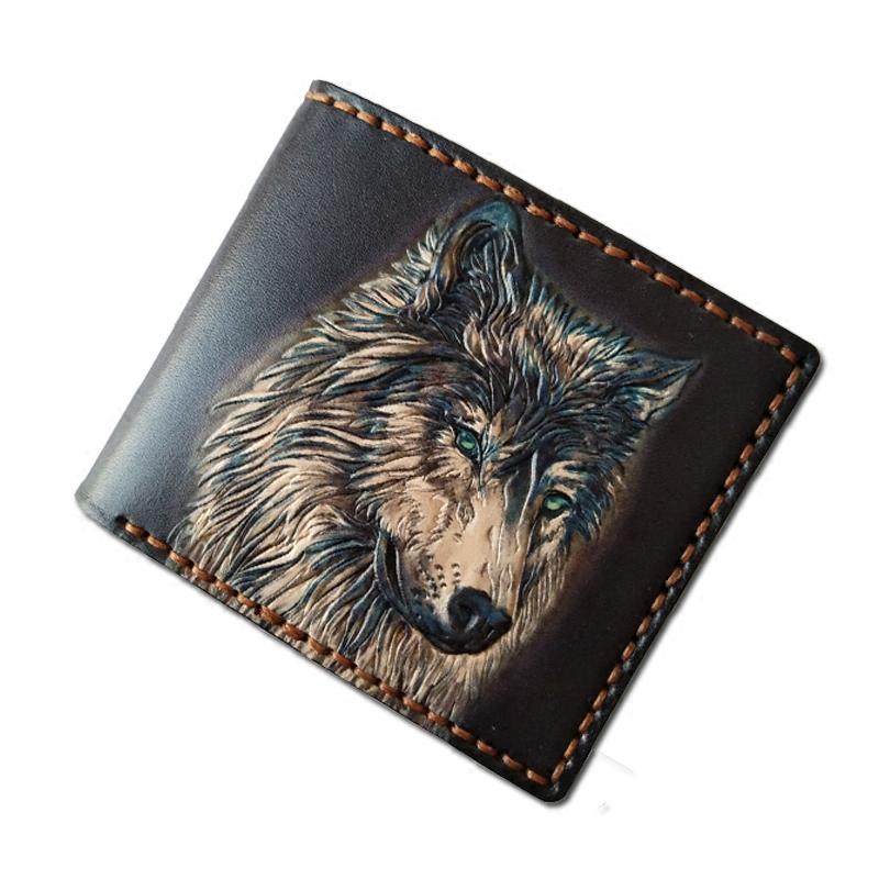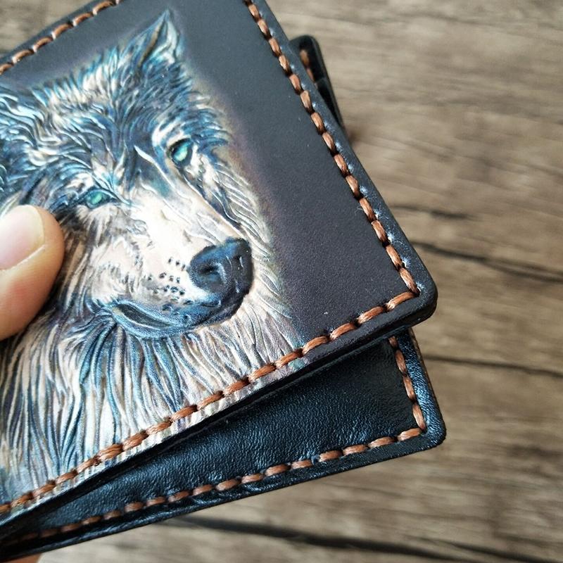 Style: Handmade Leather Wolf Tooled Mens billfold Wallet Cool Leather Wallet Slim Wallet for Men