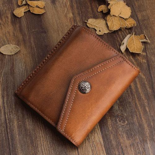 Design: Handmade Mens Cool billfold Leather Wallet Men Small Envelope Wallets Bifold for Men