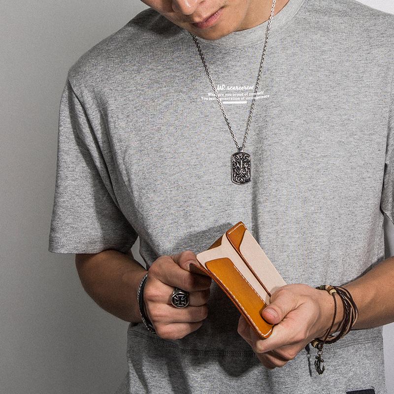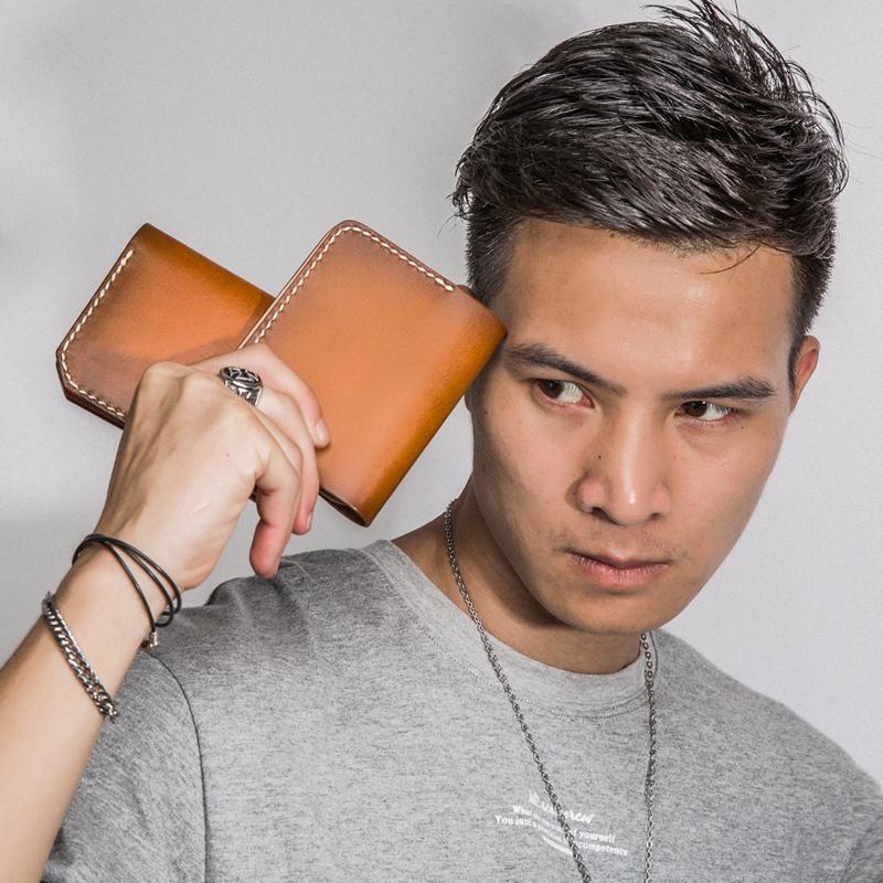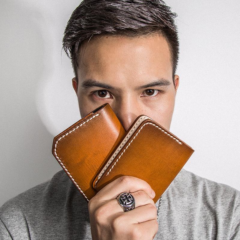 Design: Handmade Mens Cool billfold Leather Wallet Men Small Wallets Bifold for Men