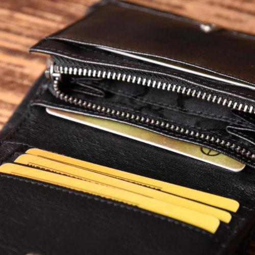 Slots: 2?full size bill slots,?3 card holders, 1 change slot, 1 license slot