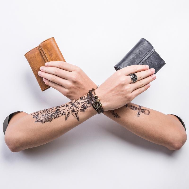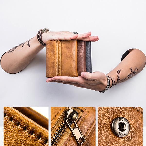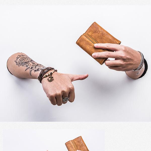 Design: Handmade Mens Cool billfold Leather Wallet Men Small Slim Wallets Trifold for Men