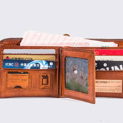 Slots: 1?full size bill slot,?6?card holders, 2 license slots, 1 zip slot