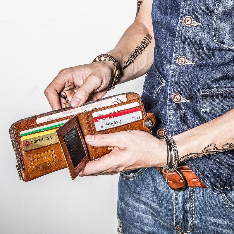 Design: Handmade Mens Cool billfold Leather Wallet Men Small Wallets Bifold for Men