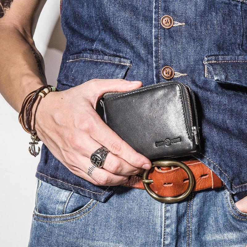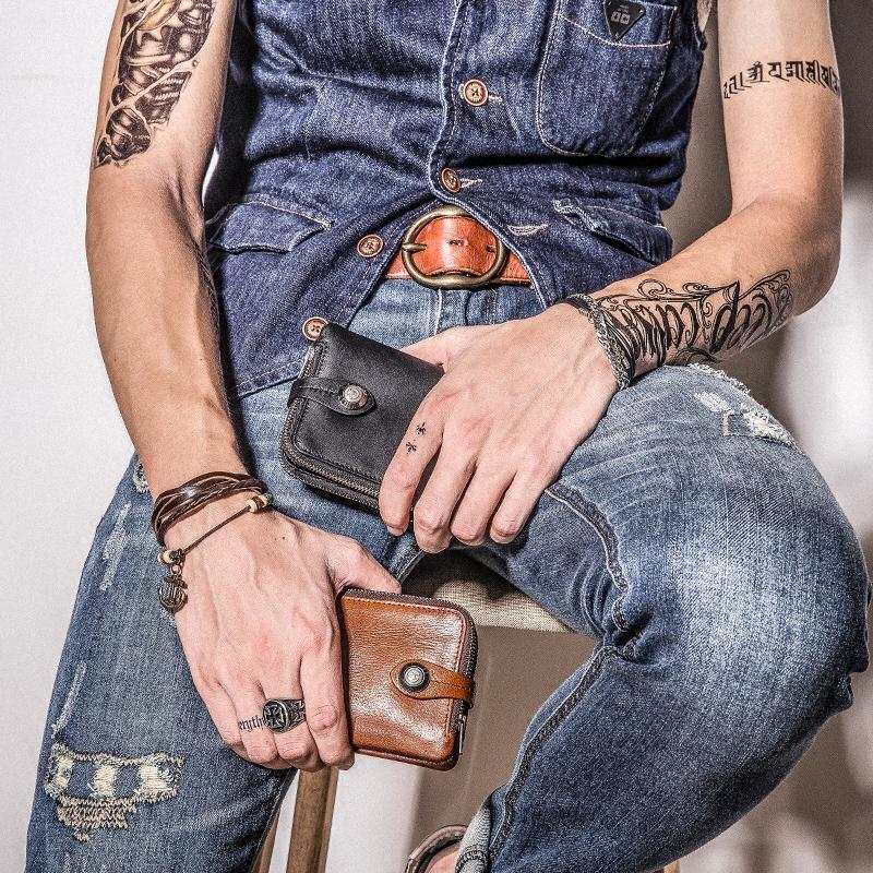 Style: Handmade Mens Cool billfold Leather Wallet Men Small Wallets Bifold for Men