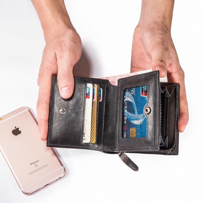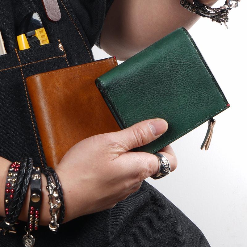 Style: Handmade Mens Cool billfold Leather Wallet Men Small Zipper Wallets Bifold for Men