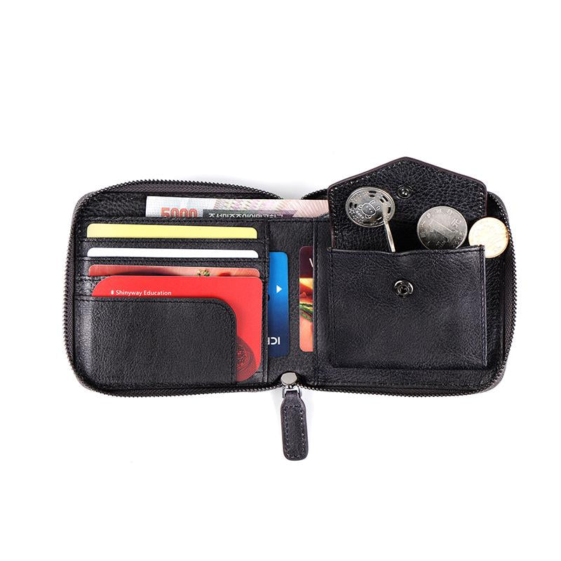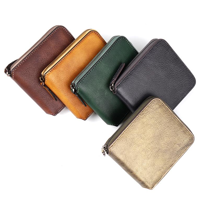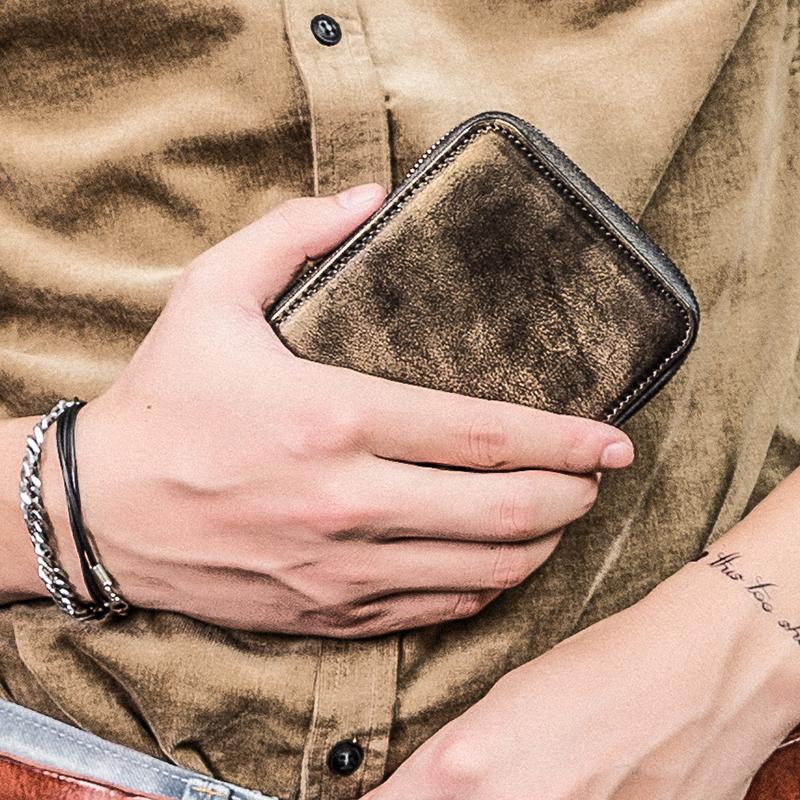 Style: Handmade Mens Cool billfold Leather Wallet Men Small zipper Wallets Bifold for Men