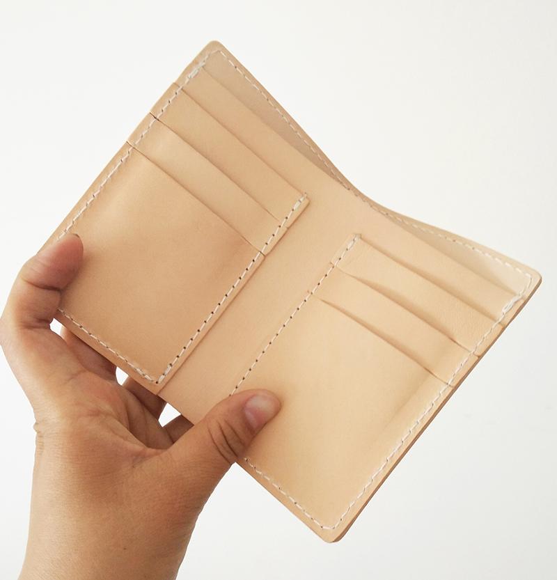 Handmade Vertical Mens Leather Beige billfold Small Wallet Cool Small Slim Bifold Wallets for Men