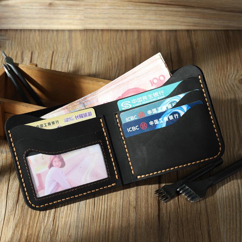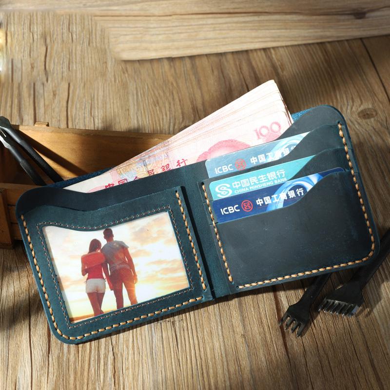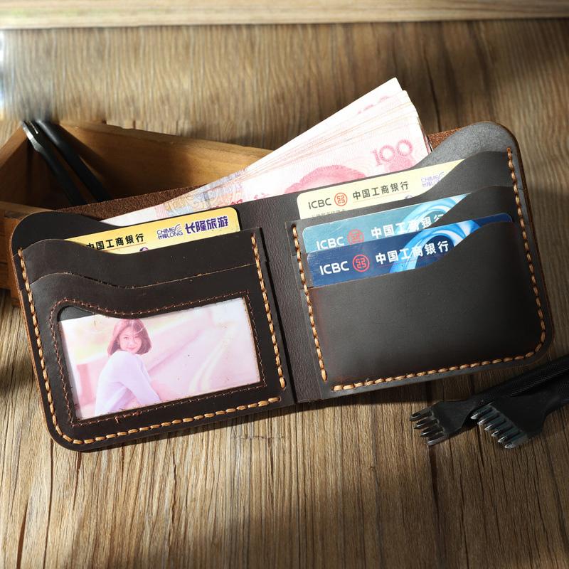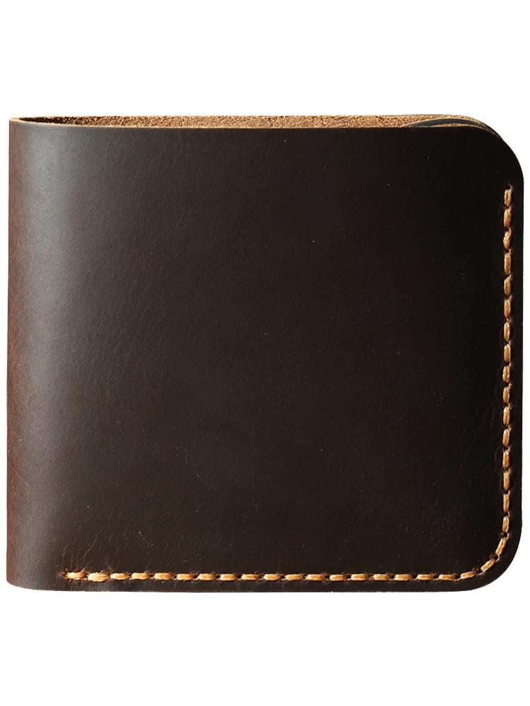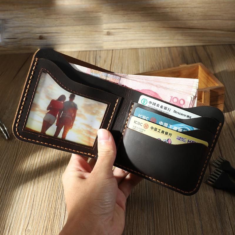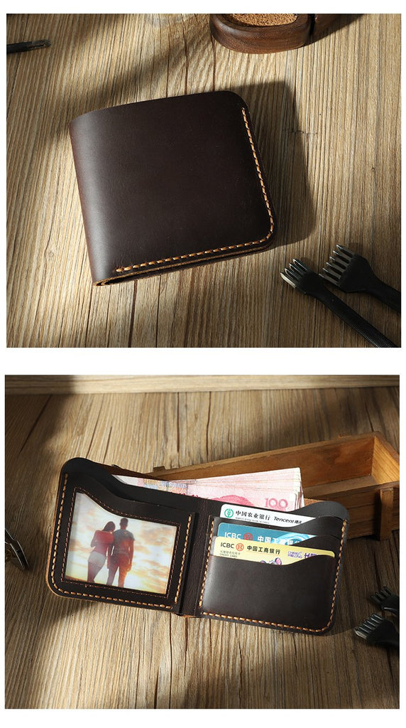 Design: Handmade Slim Coffee Leather Mens Billfold Wallet Personalize Bifold Small Wallets for Men