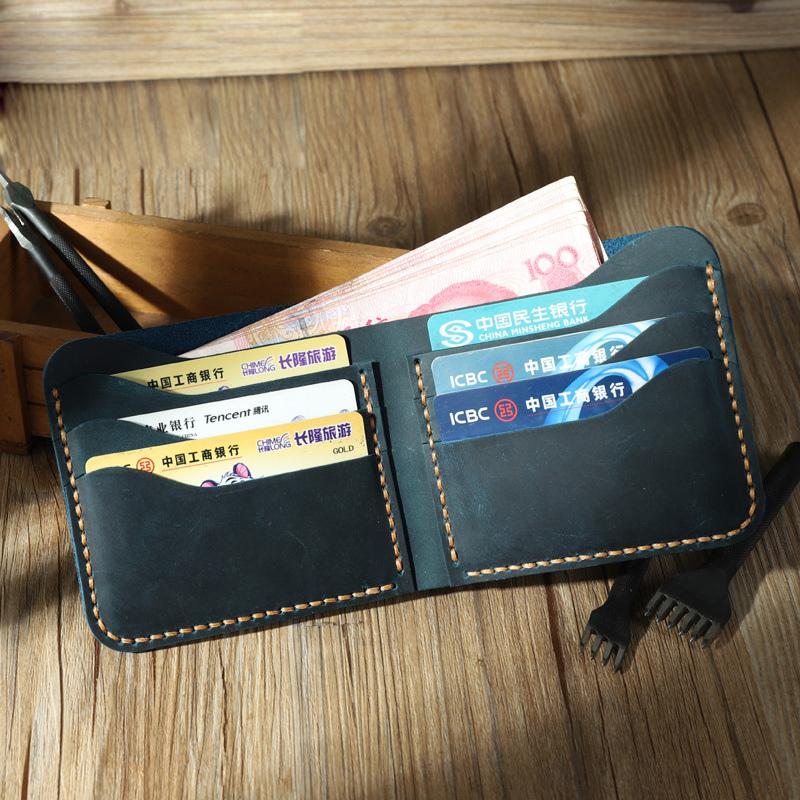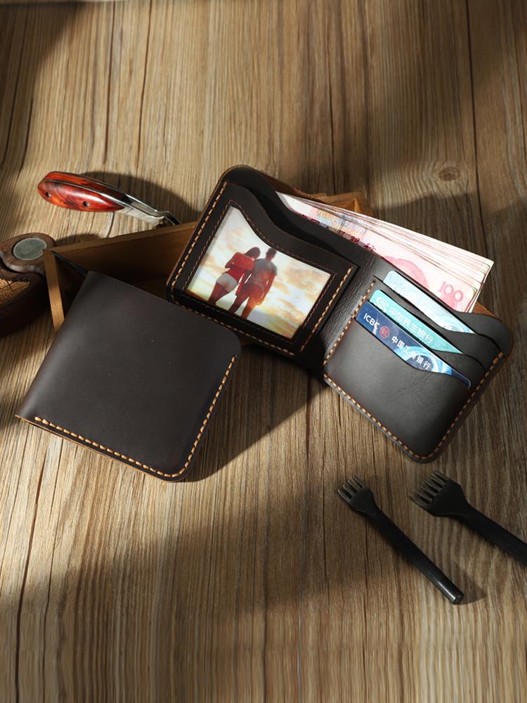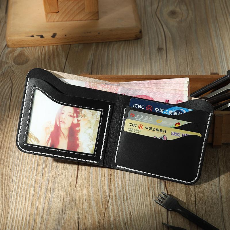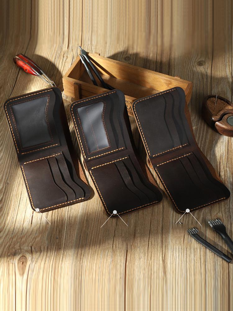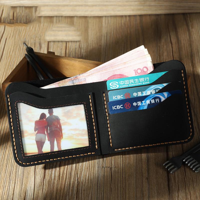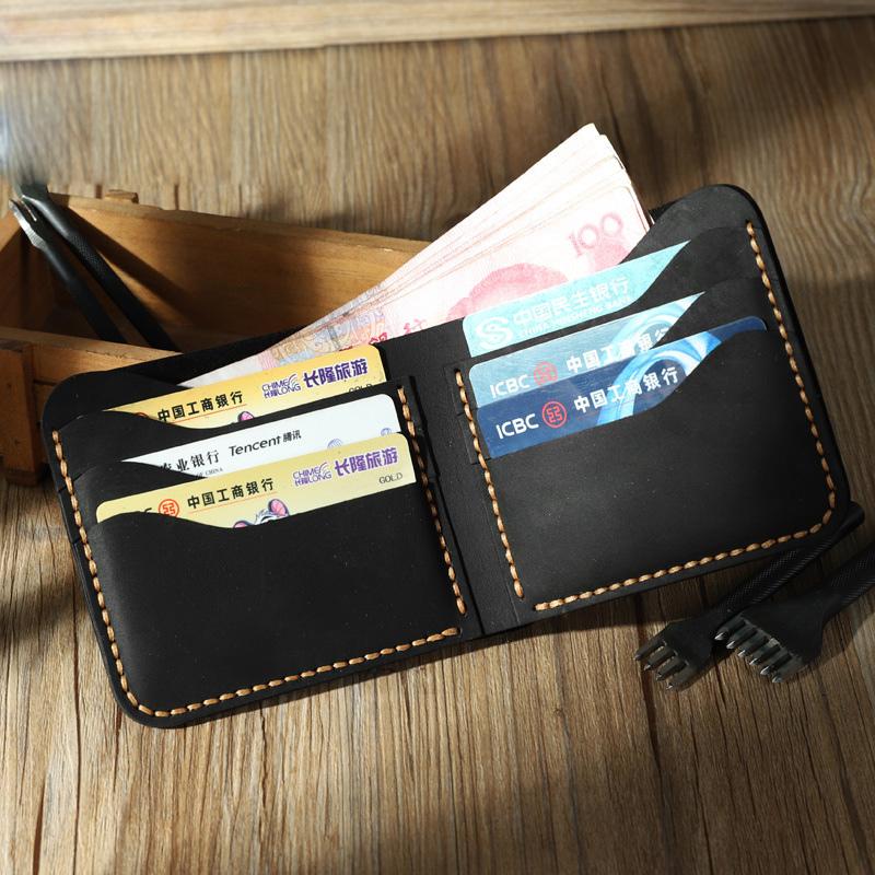 Design: Handmade Slim Coffee Leather Mens Billfold Wallet Personalize Bifold Small Wallets for Men