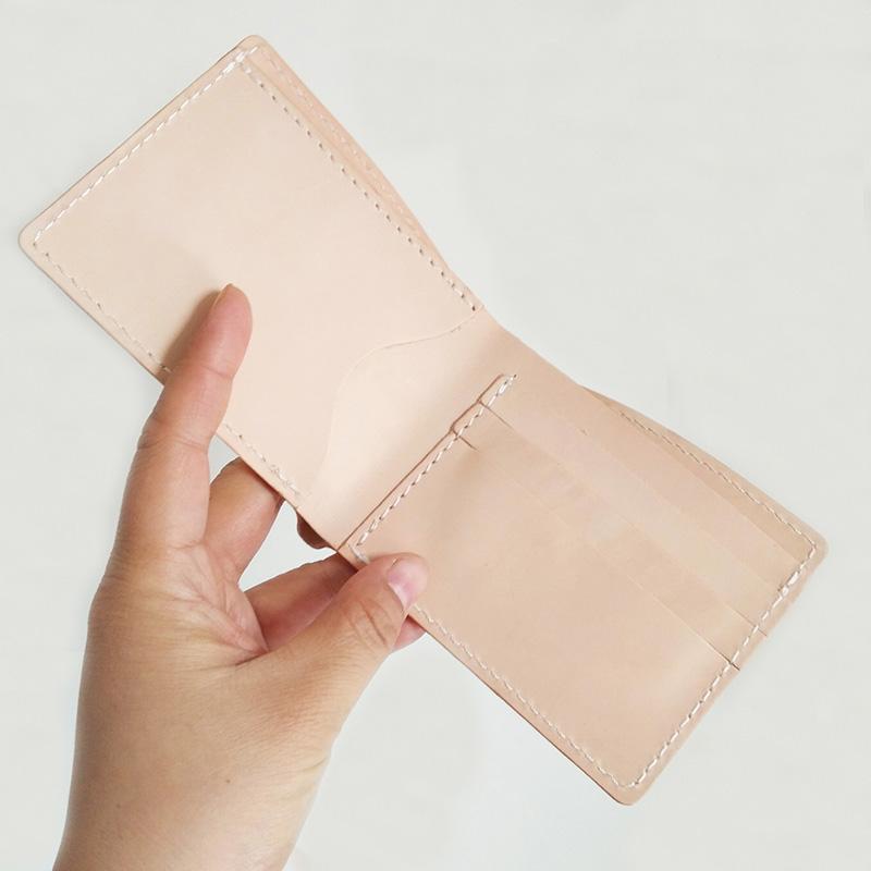 Style: Light Beige Handmade Mens Simple Leather Small Wallets Cool billfold Wallet for Men