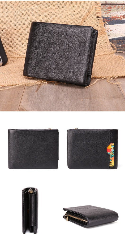 Design: Vintage Brown Trifold Leather Men's Small Wallet RFID Black billfold Wallet For Men