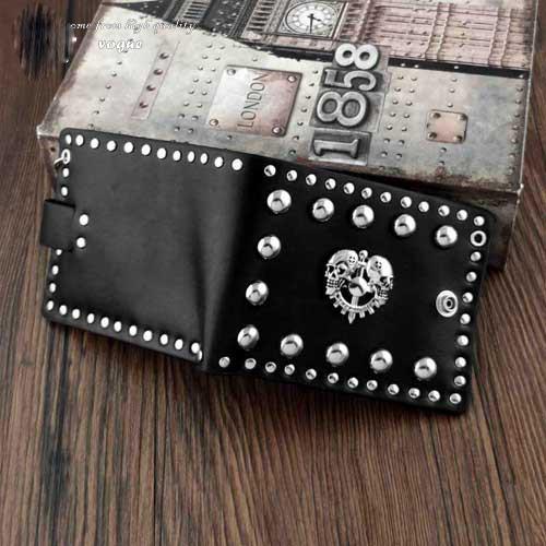 Design: Punk Black Leather Men's Small Biker Wallet Chain Wallet billfold Wallet with Chain For Men