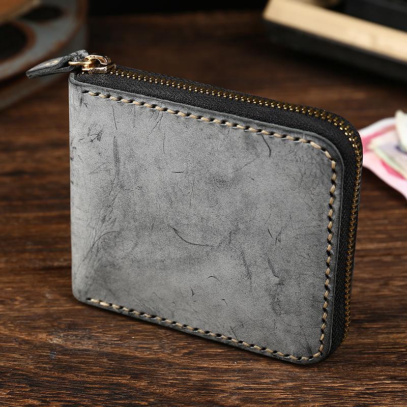 Design: Retro Handmade Mens Simple Black billfold Wallet Brown Bifold Card Wallet Small Wallet For Men