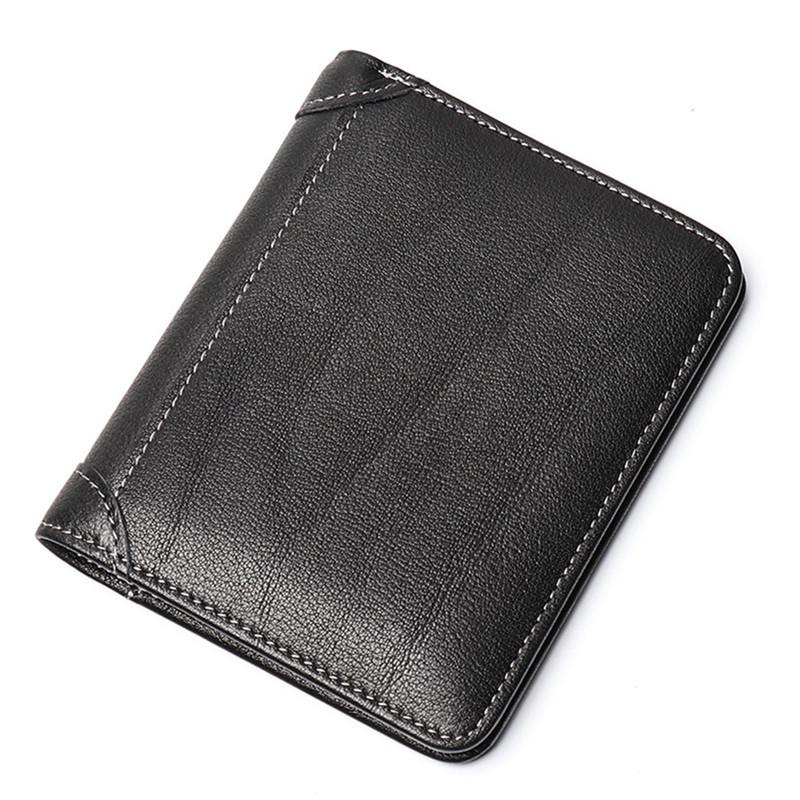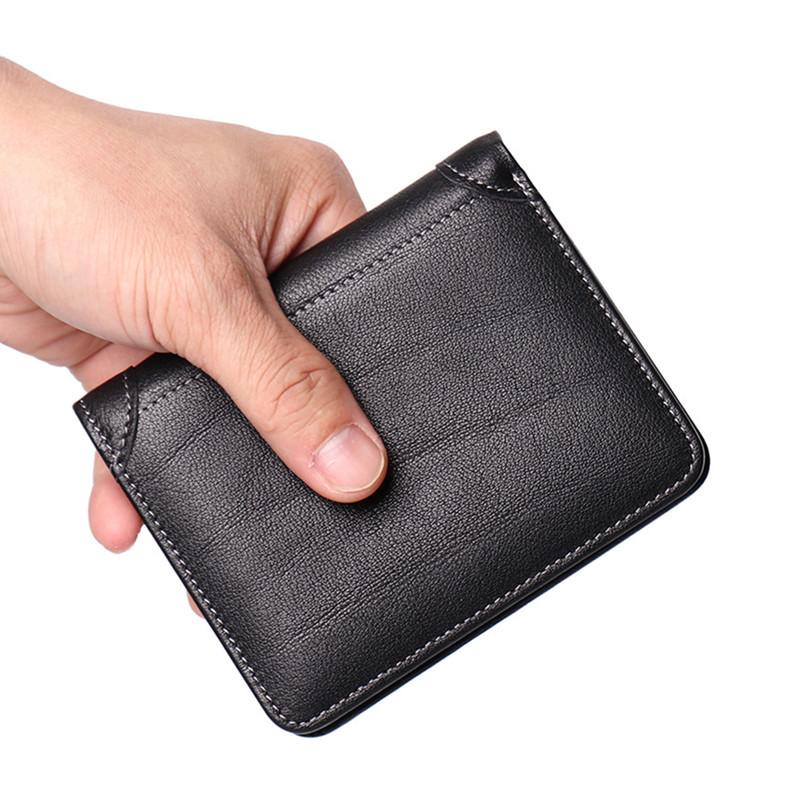 Style: Simple Black Leather Men's Bifold Small Wallet Front Pocket billfold Wallet For Men
