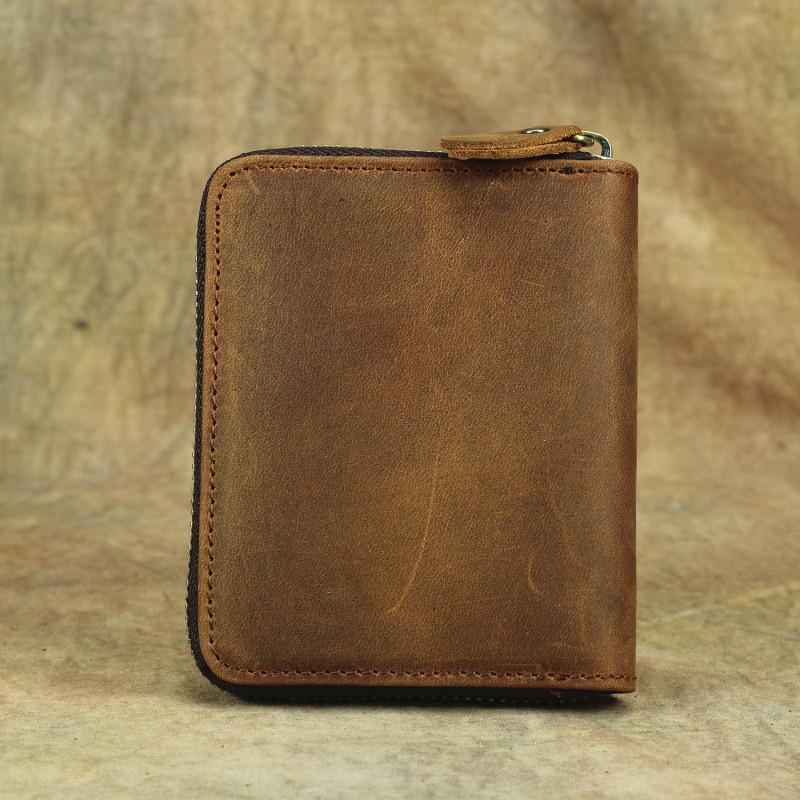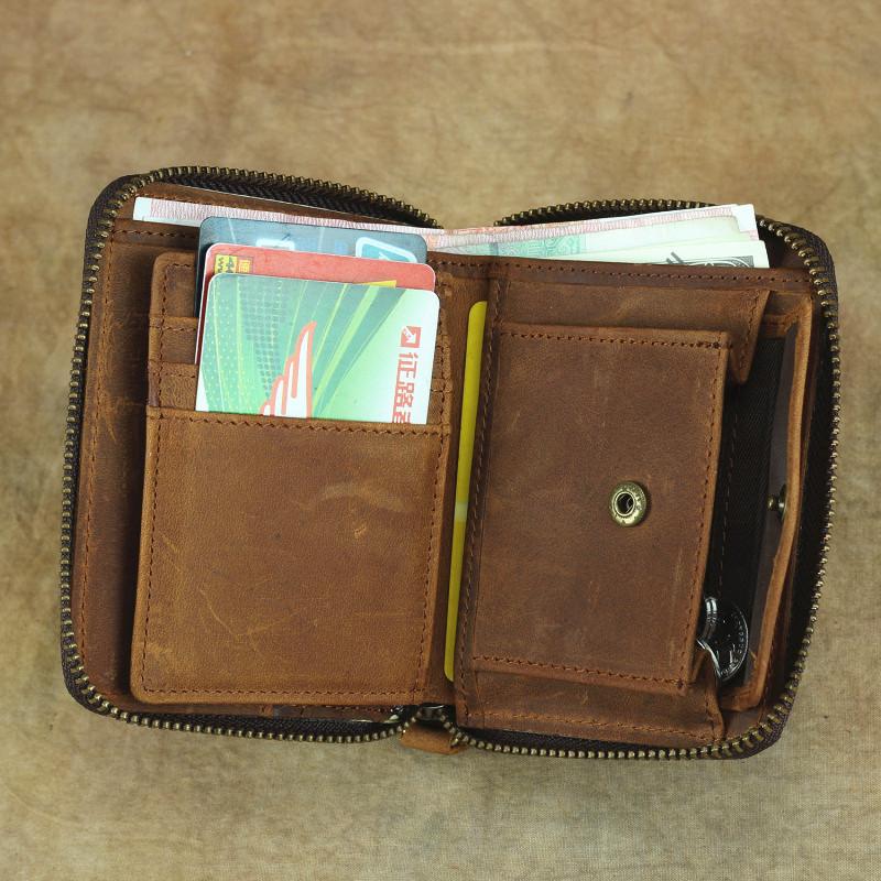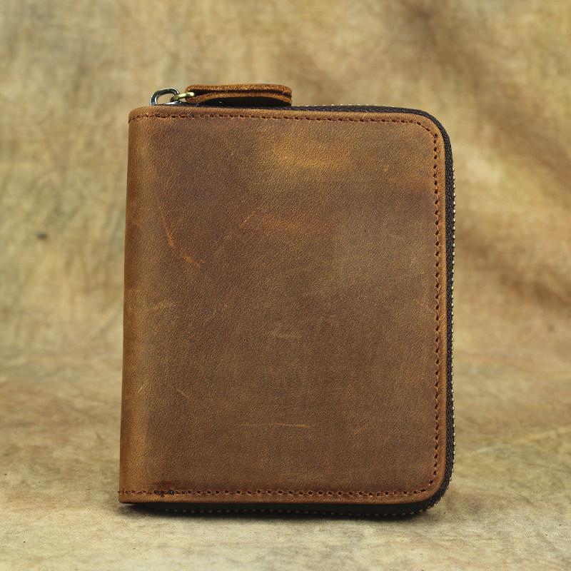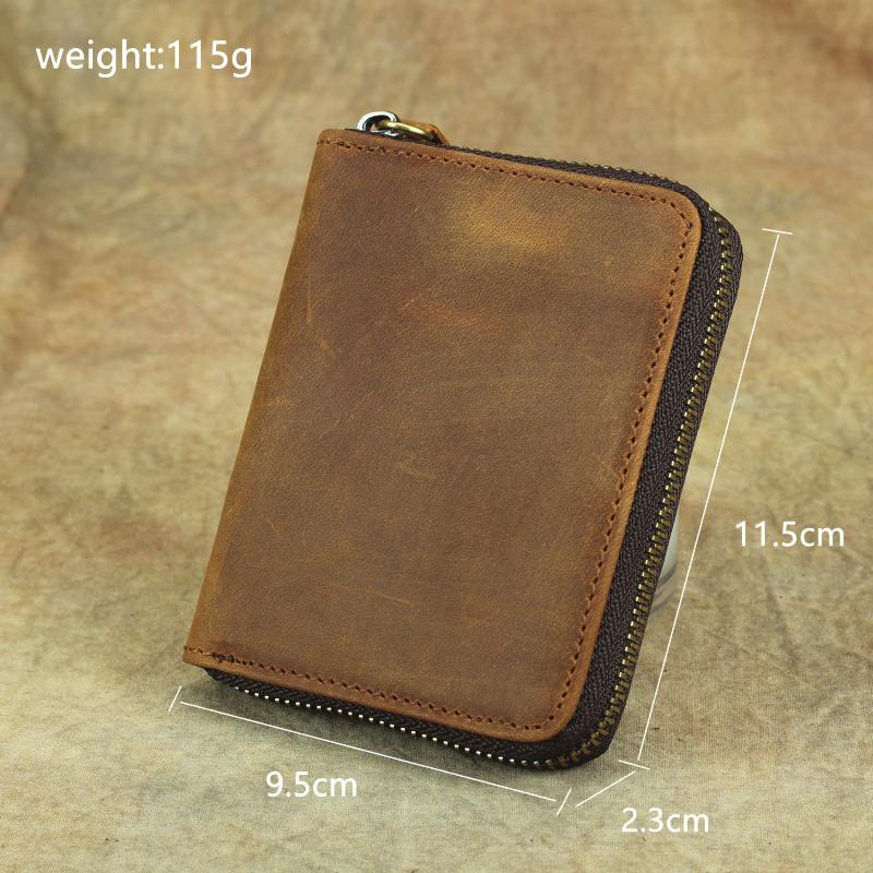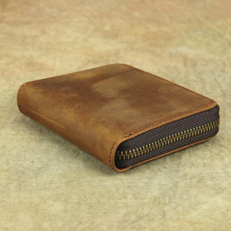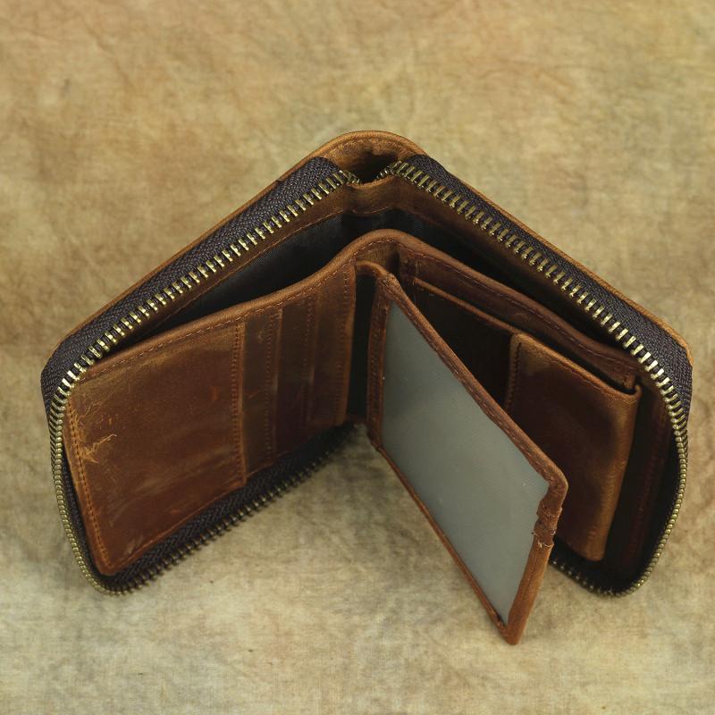 Design: Vintage Bifold Leather Men's Zipper Small Wallet billfold Zipper Wallet For Men
