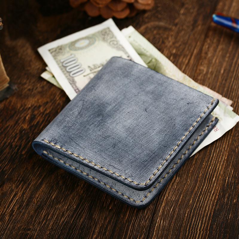 Style: Simple Thin Handmade Cool Mens Black billfold Wallet Blue Card Wallet Brown Wallet For Men