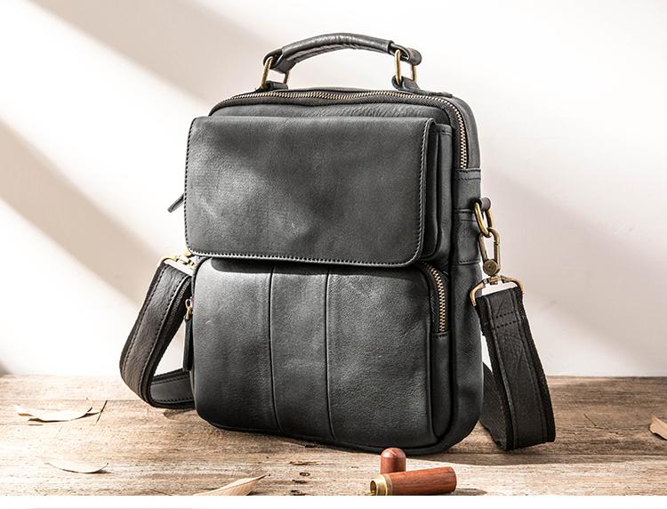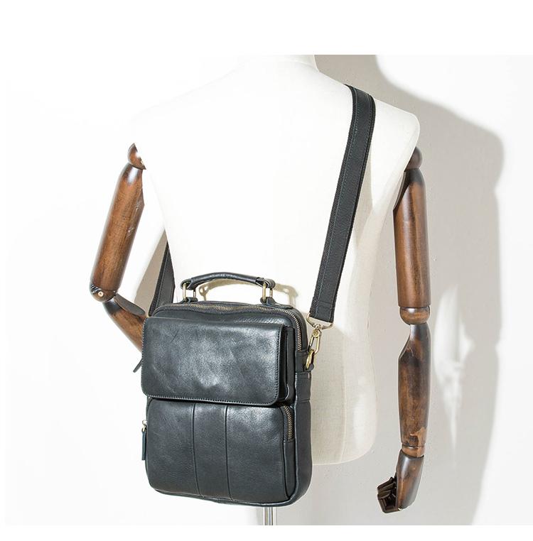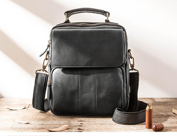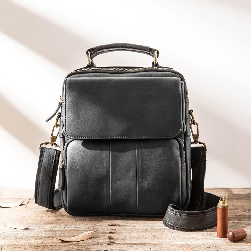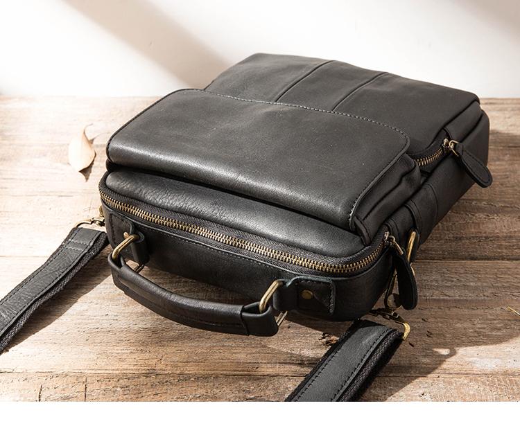 Style: Black Handmade Leather Mens 10 inches Briefcase Work Bag Laptop Bag Business Bag for Men
