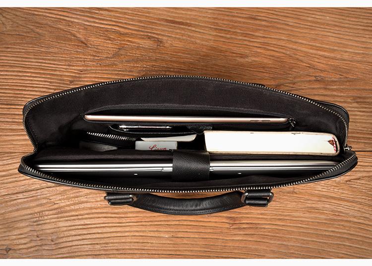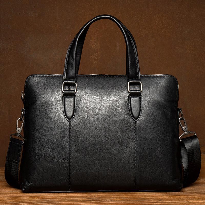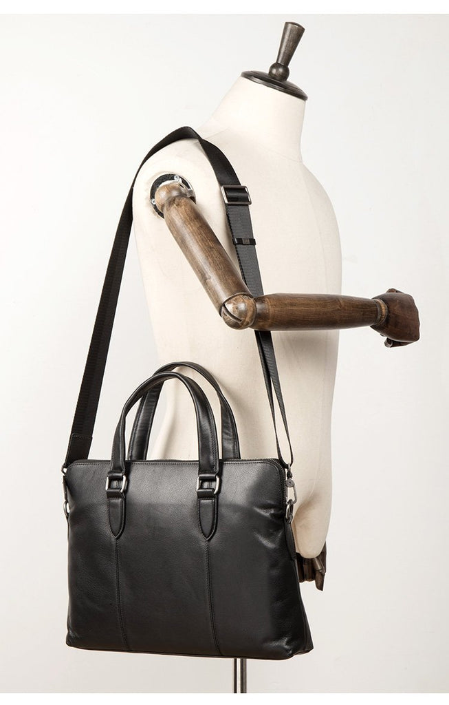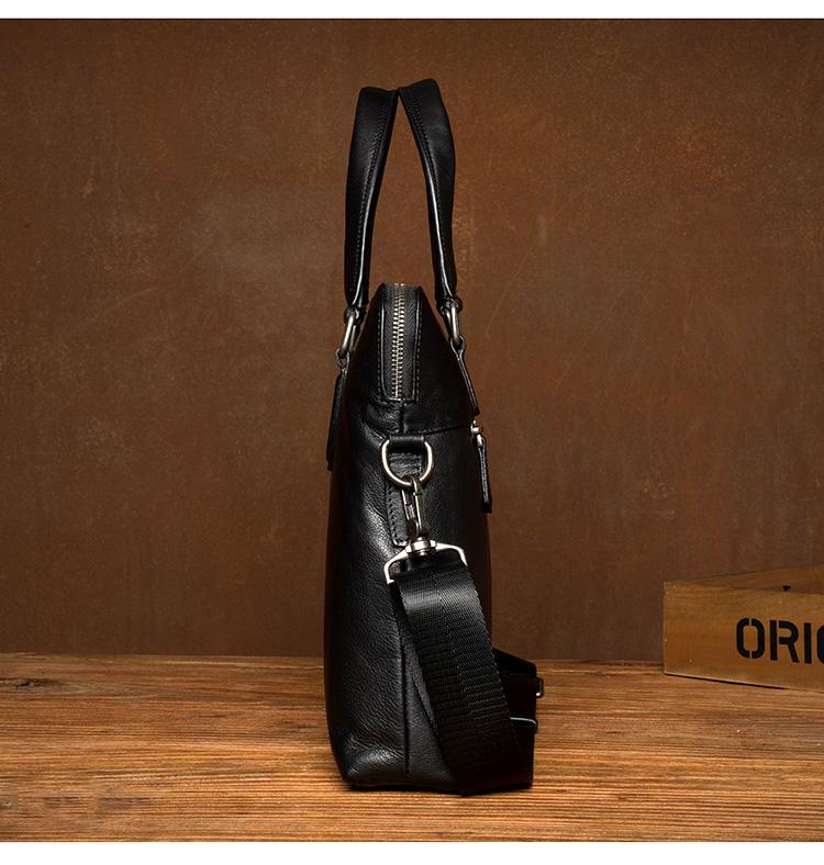 Style: Black Leather Mens 13 inches Briefcase Laptop Bag Business Bags Work Bag for Men