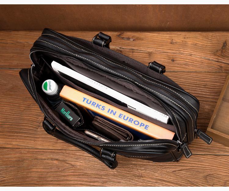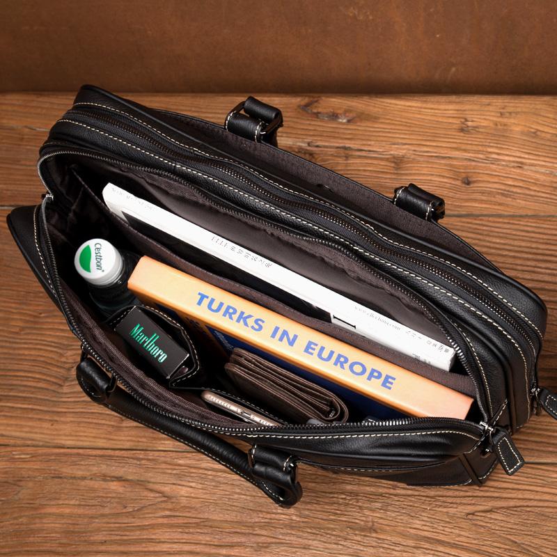 Black Leather Mens 15 inches Briefcase Laptop Side Bag Business Bags Work Bags for Men