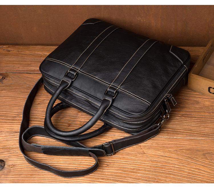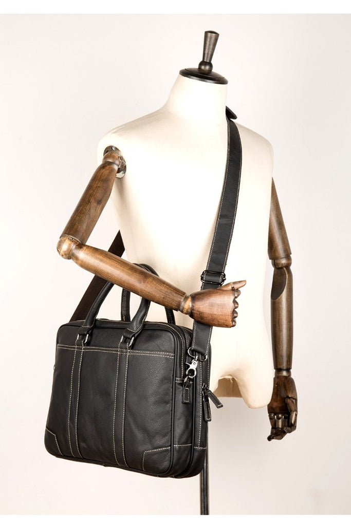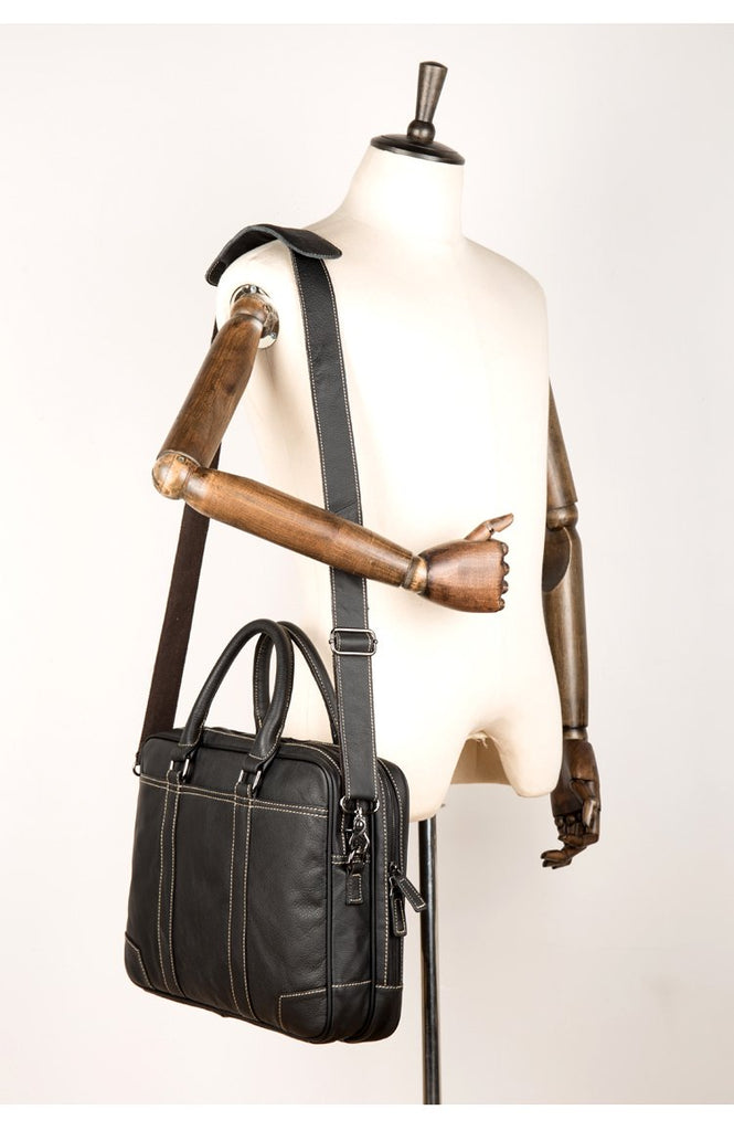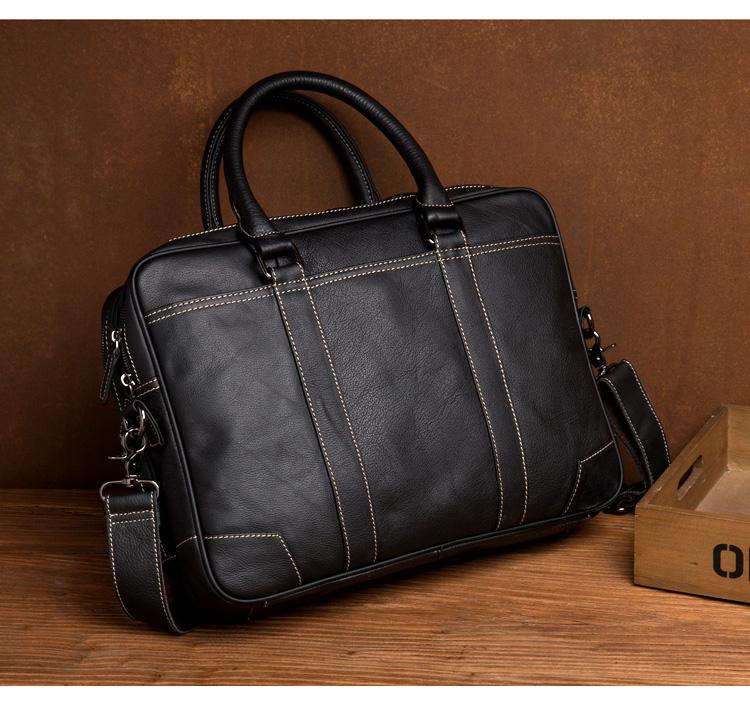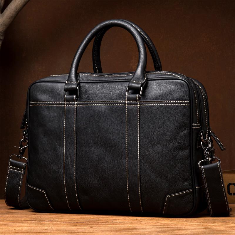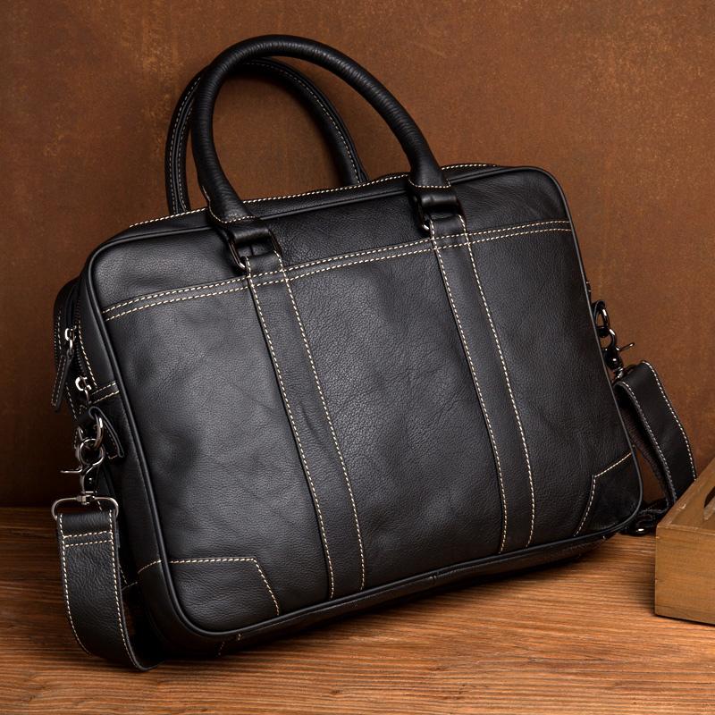 Style: Black Leather Mens 15 inches Briefcase Laptop Bag Business Bags Work Bags for Men