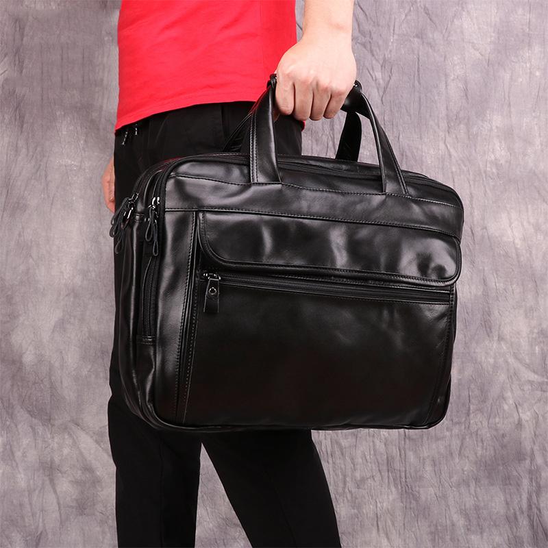 Design: Black Leather Mens 15 inches Multi-function Laptop Work Bag Handbag Briefcase Shoulder Bags Business Bags For MenOverview: