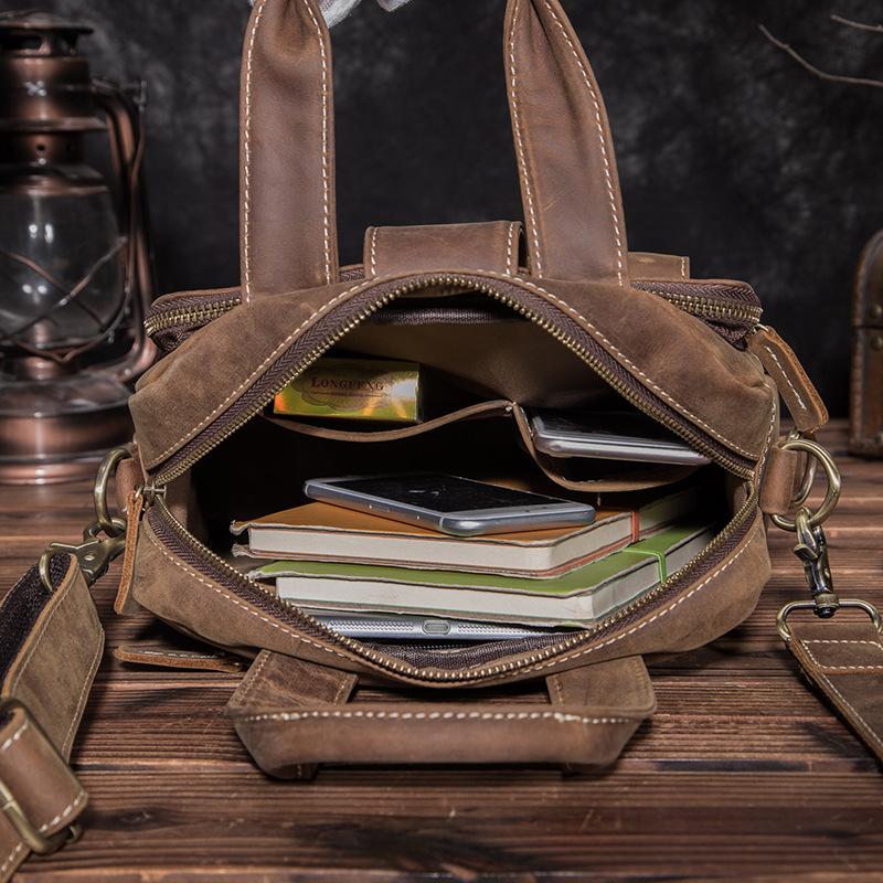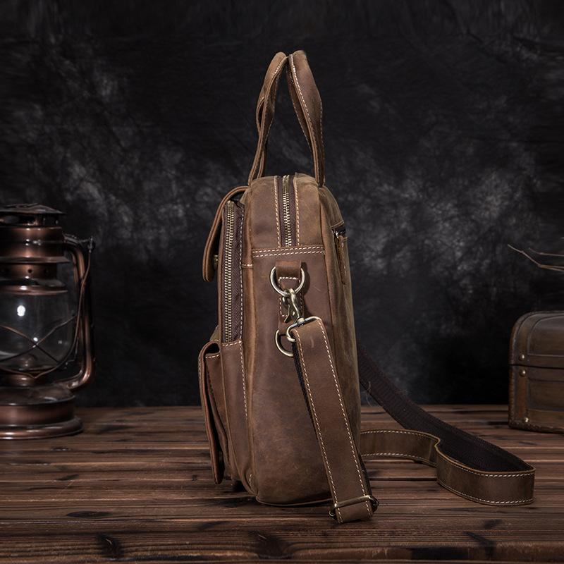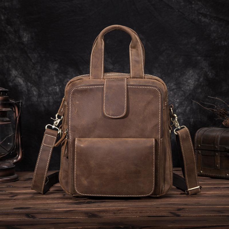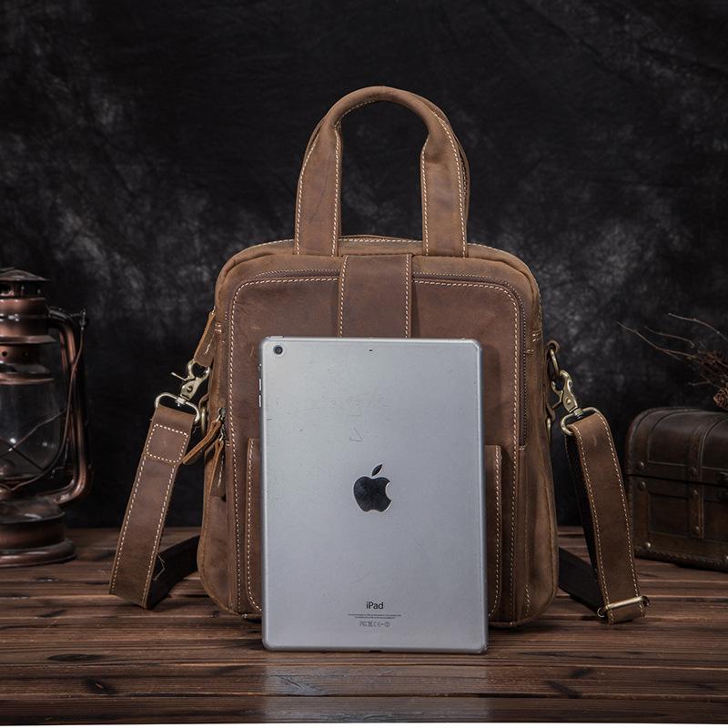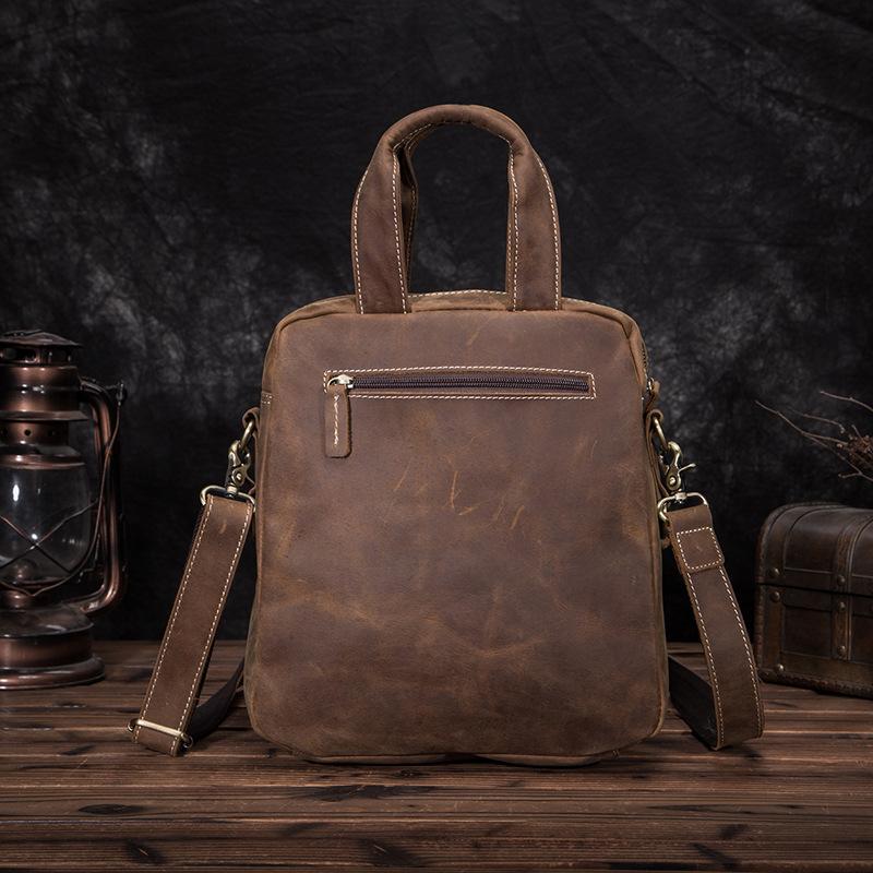 Design: Leather Mens Vertical Work Bag Handbag Brown Vertical Small Briefcase Shoulder Bag For MenOverview: