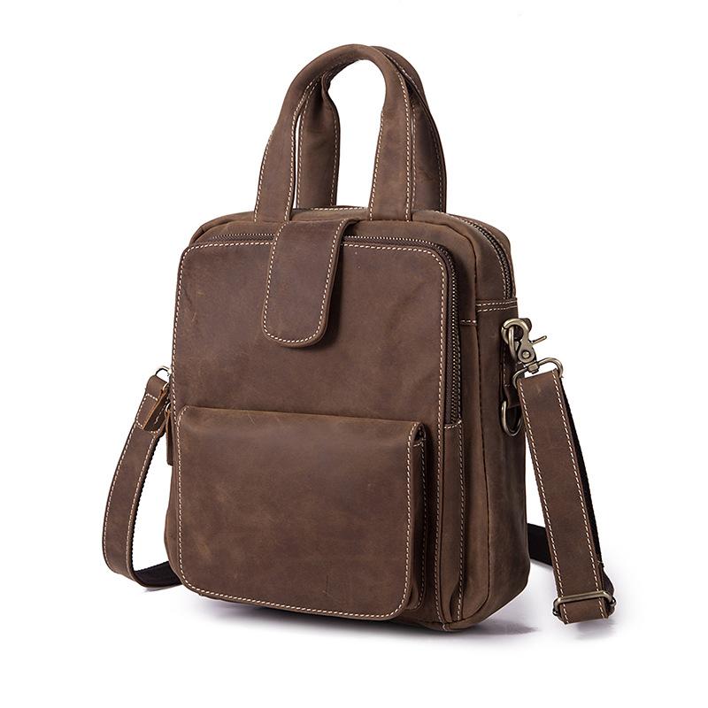 Design: Leather Mens Vertical Work Bag Handbag Brown Vertical Small Briefcase Shoulder Bag For Men