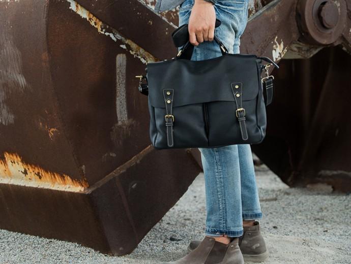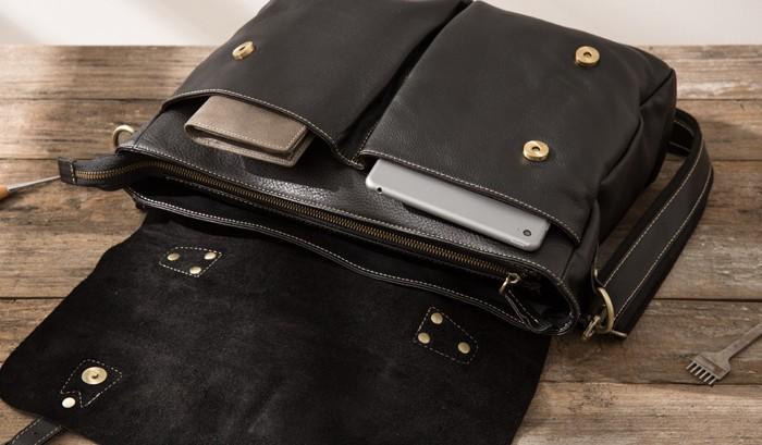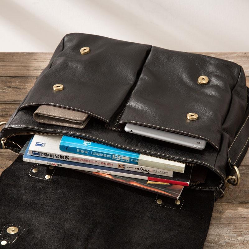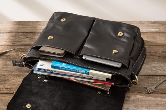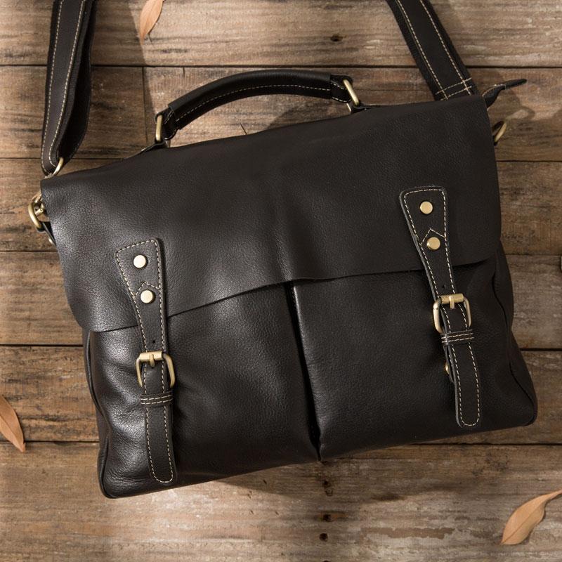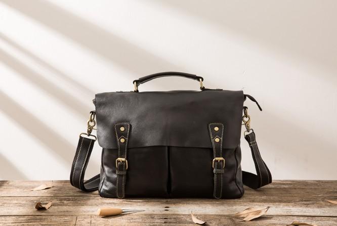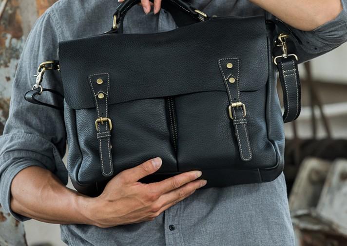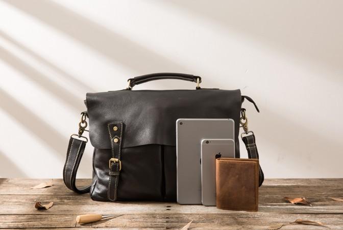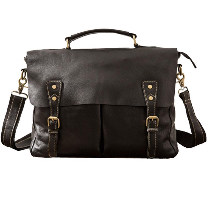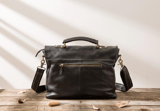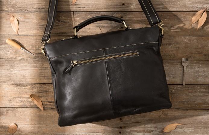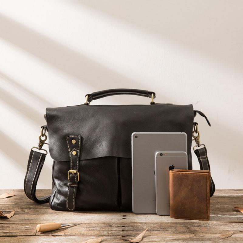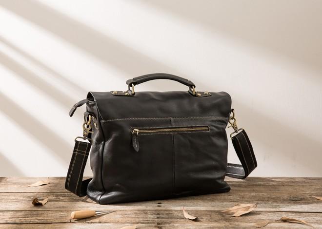 Design: Black Leather Mens Briefcase Work Bag Laptop Bag Business Bag for Men