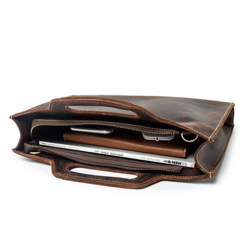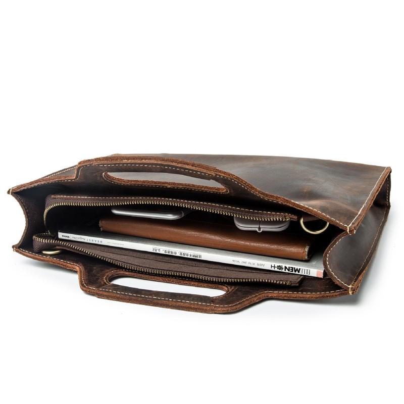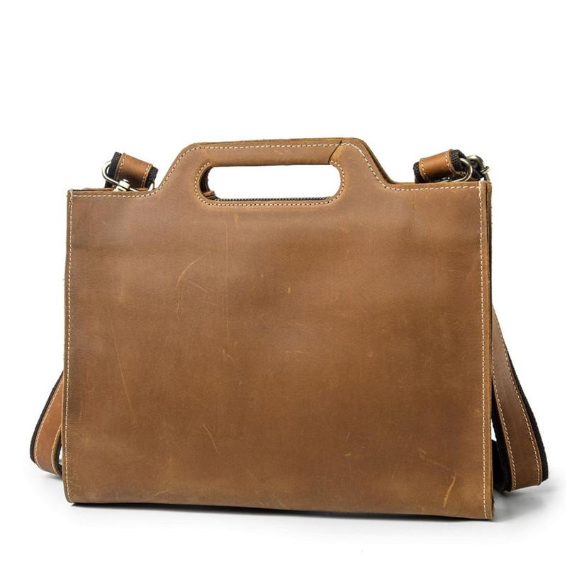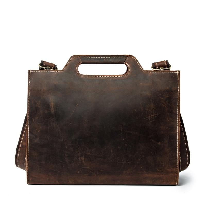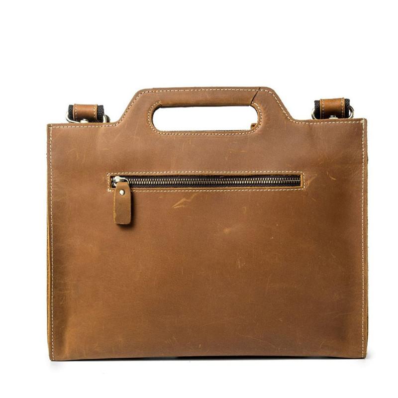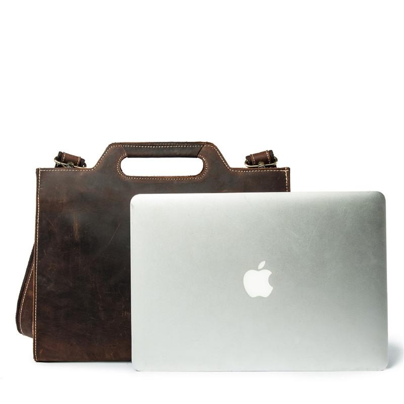 Design: Brown Leather Men's Simple Professional Briefcase 13‘’ Laptop Handbag Business Bag For Men