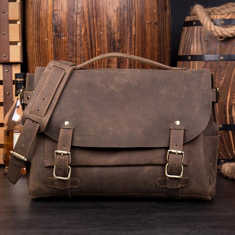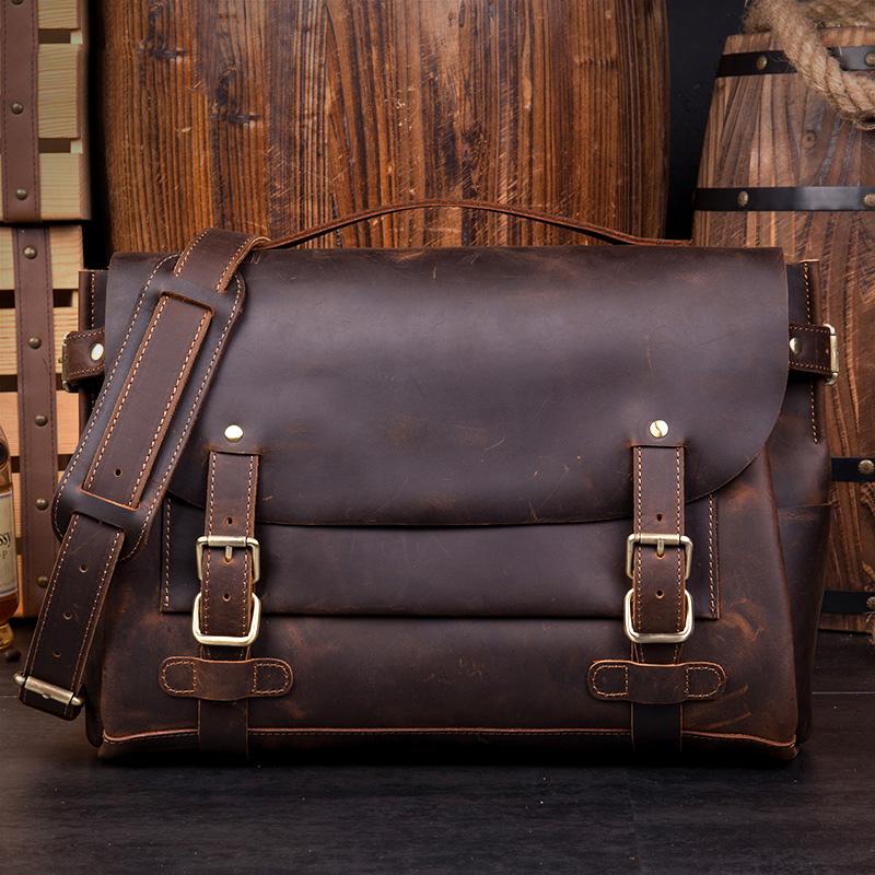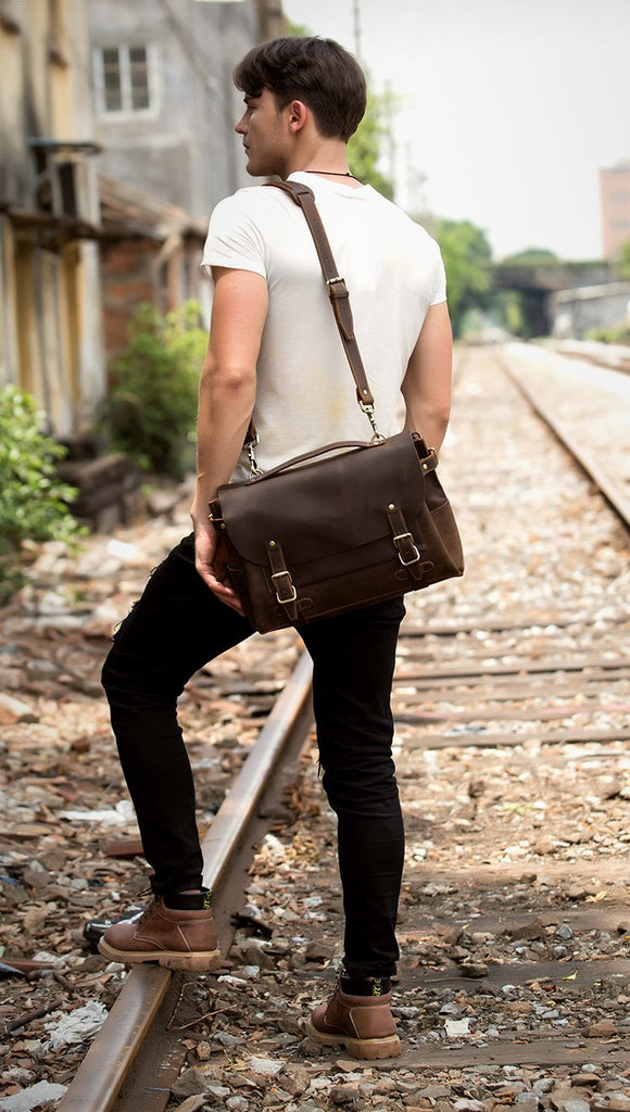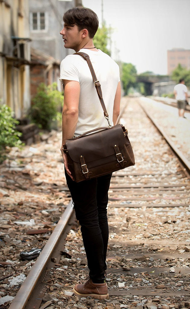 Design: Brown Cool Leather 14 inches Dark Brown Shoulder Bag Travel Bags Handbag for Men