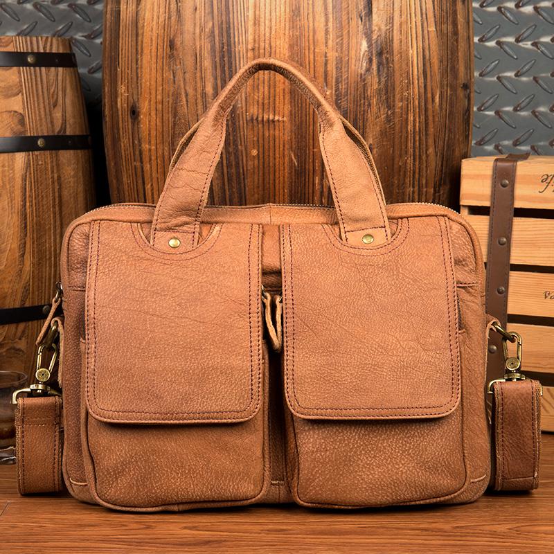 Design: Brown Leather Mens 13 inches Briefcase Laptop Bag Khaki Business Bags Work Bag for Men