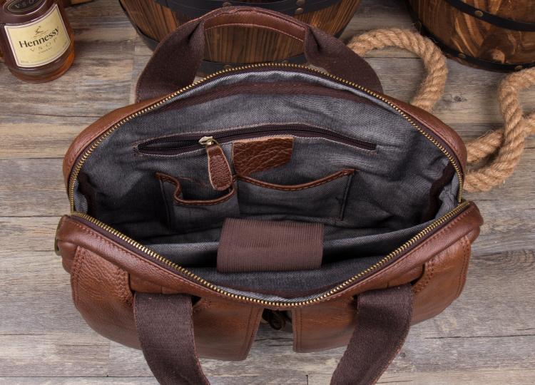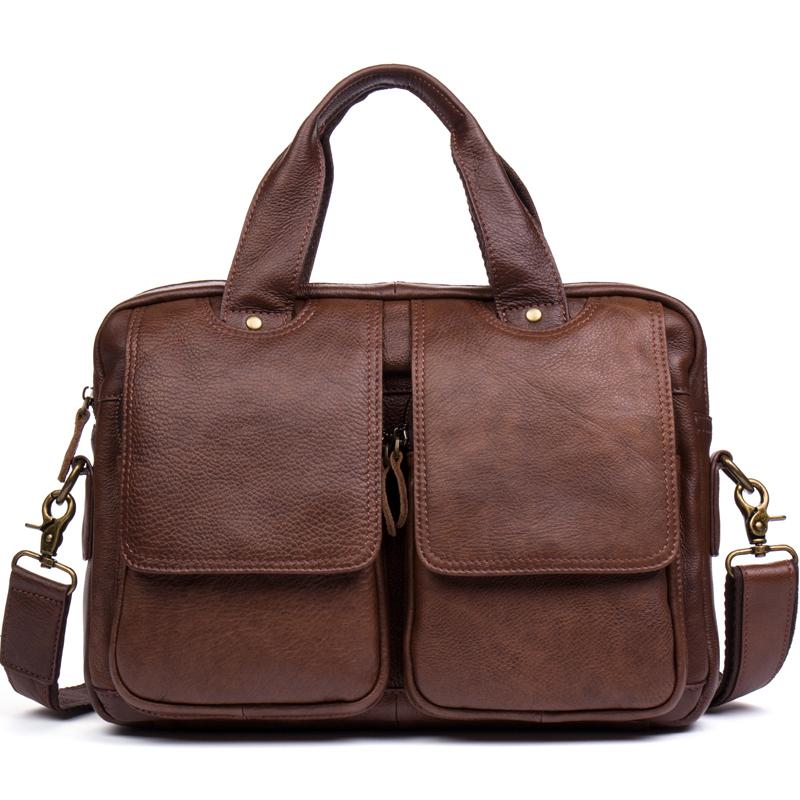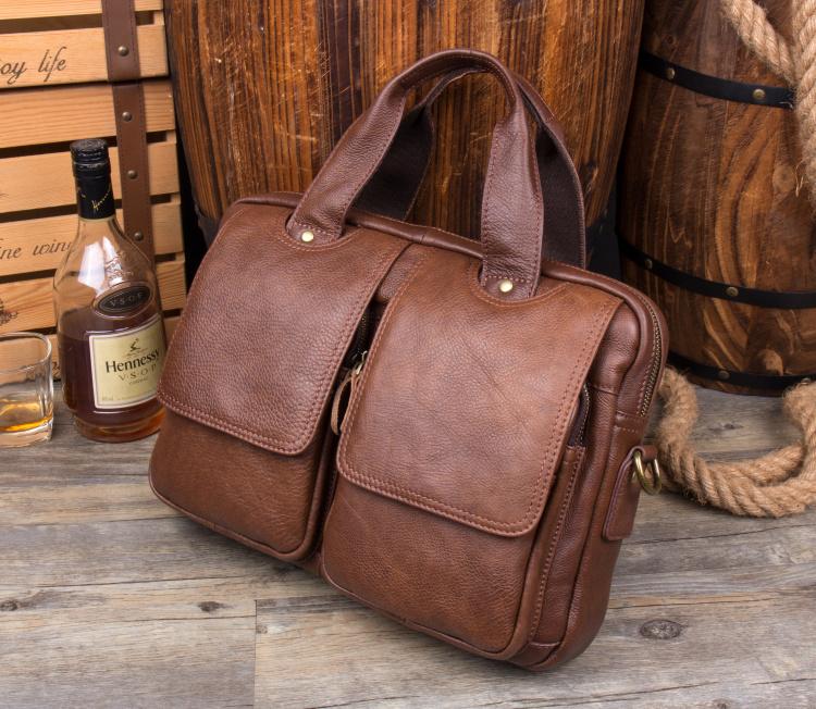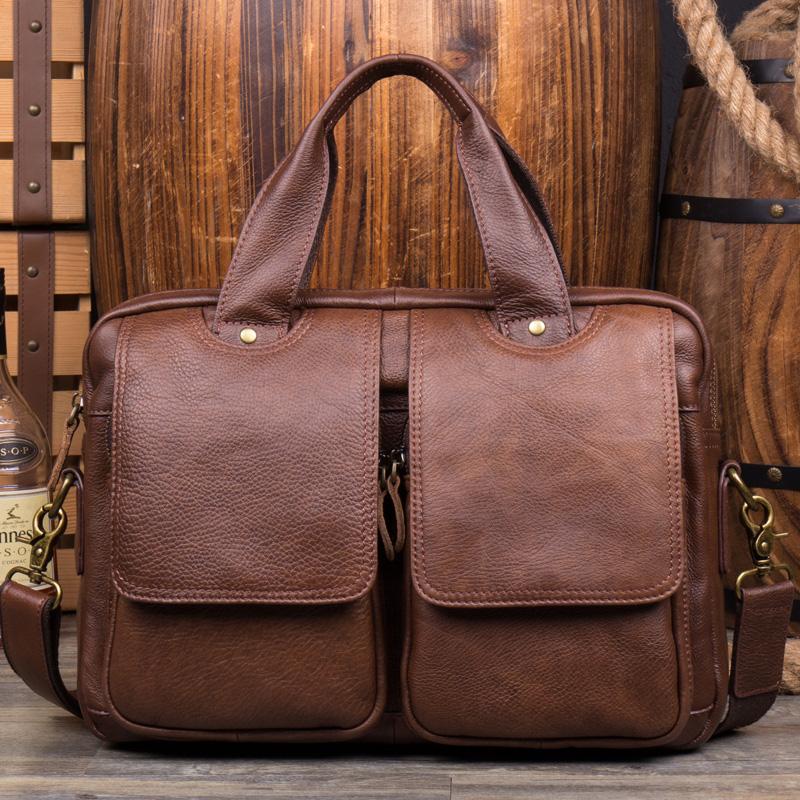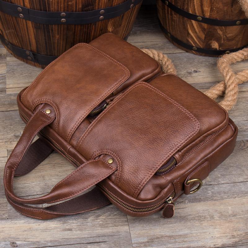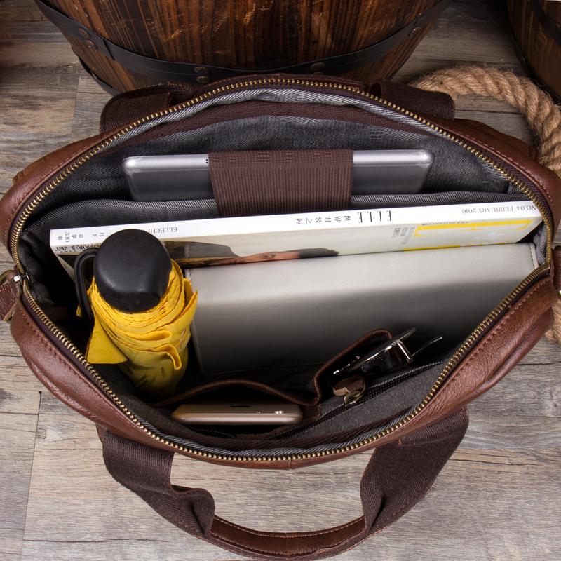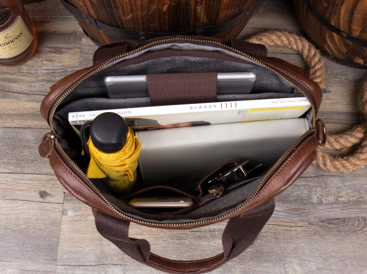 Style: Brown Leather Mens 13 inches Briefcase Laptop Bag Khaki Business Bags Work Bag for Men