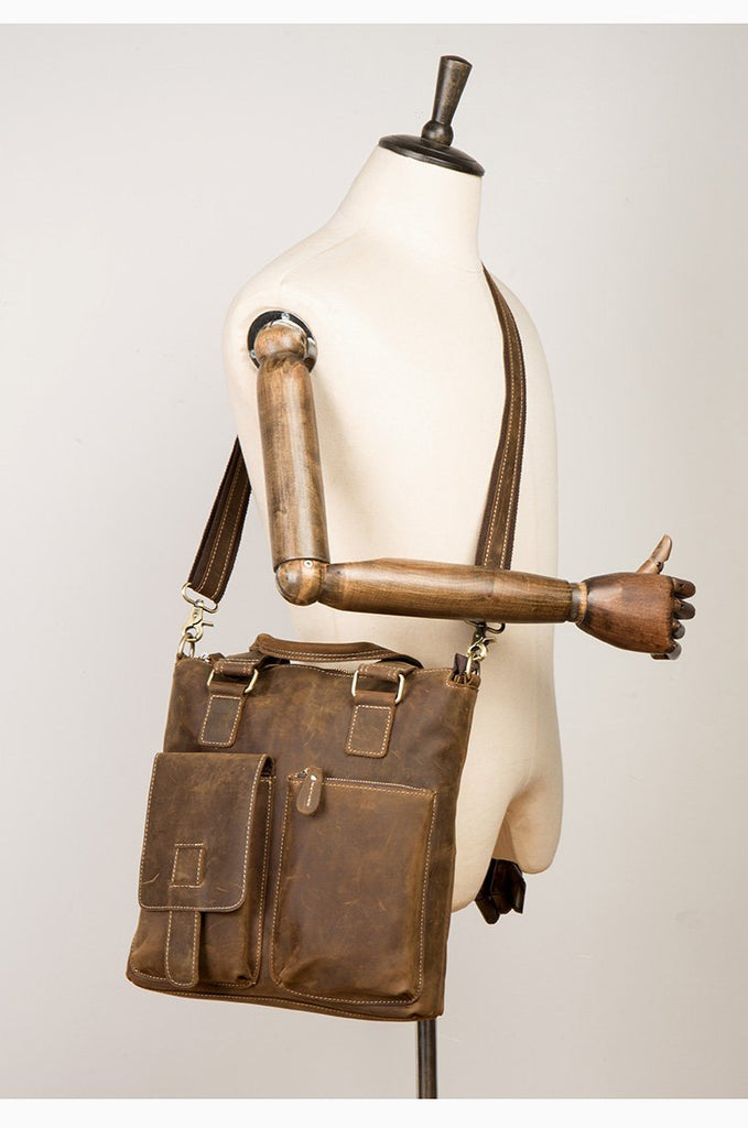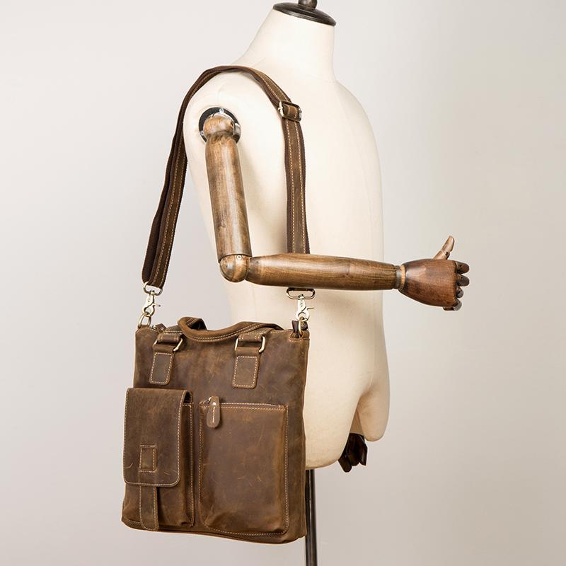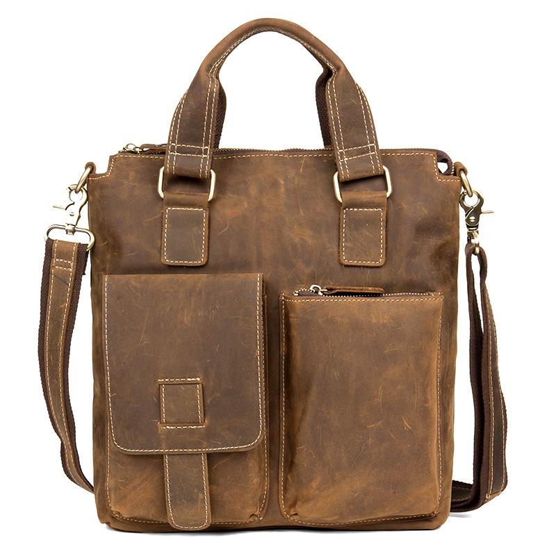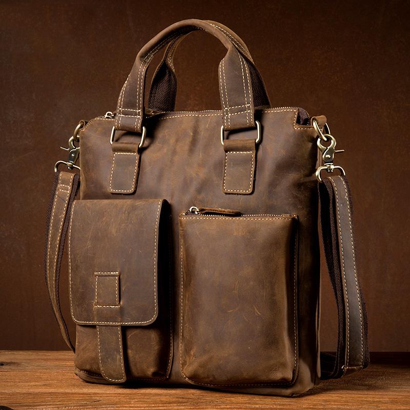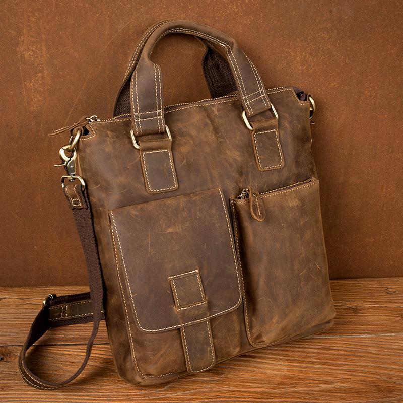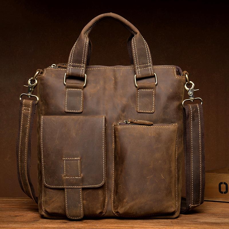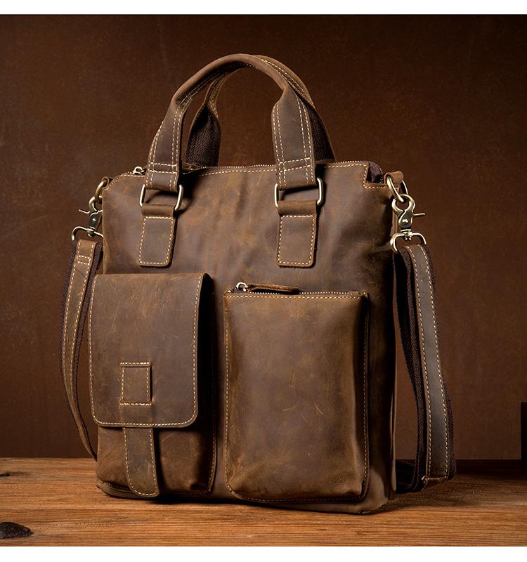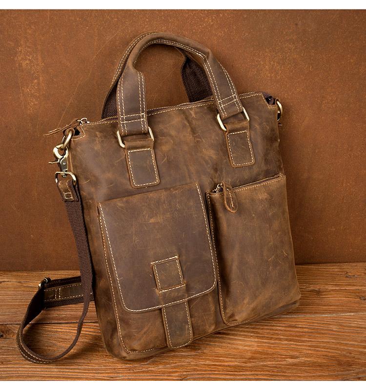 Style: Brown Leather Mens 13 inches Briefcase Laptop Bags Business Bags Work Bag for Men