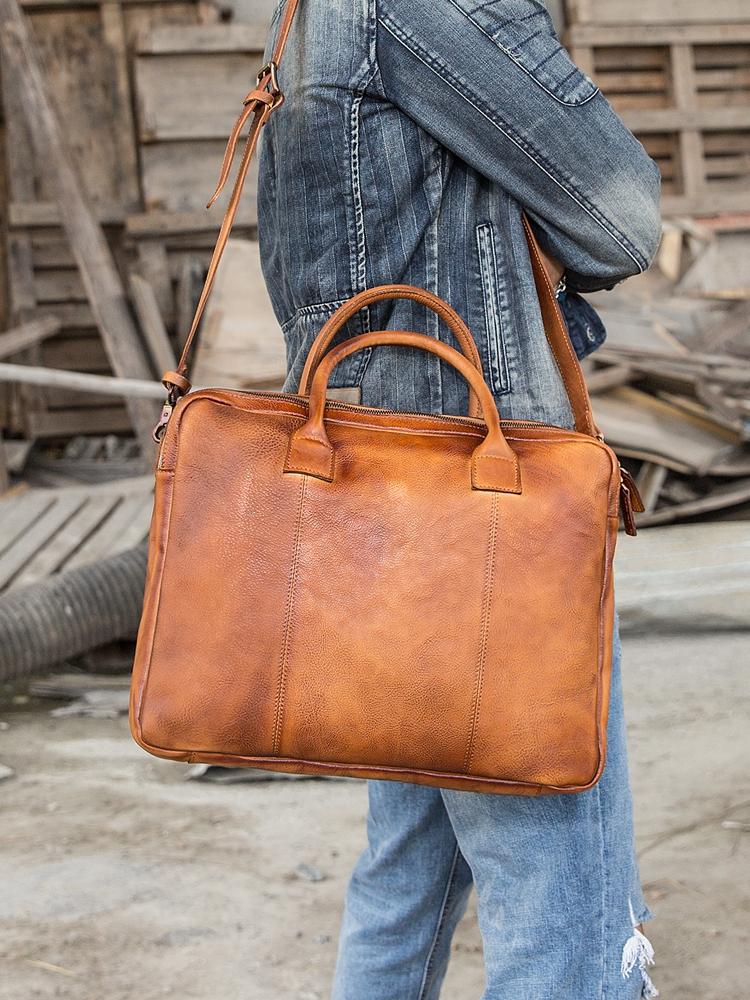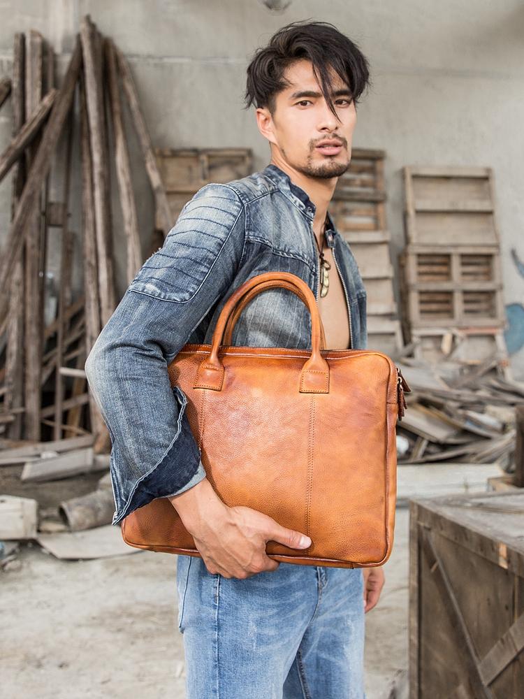 Style: Brown Leather Mens 14 inches Briefcase Work Bag Laptop Bag Business Bag for Men