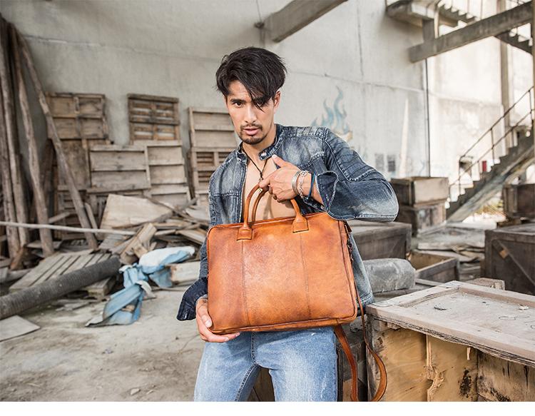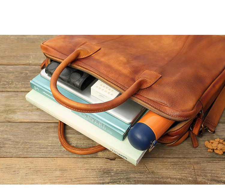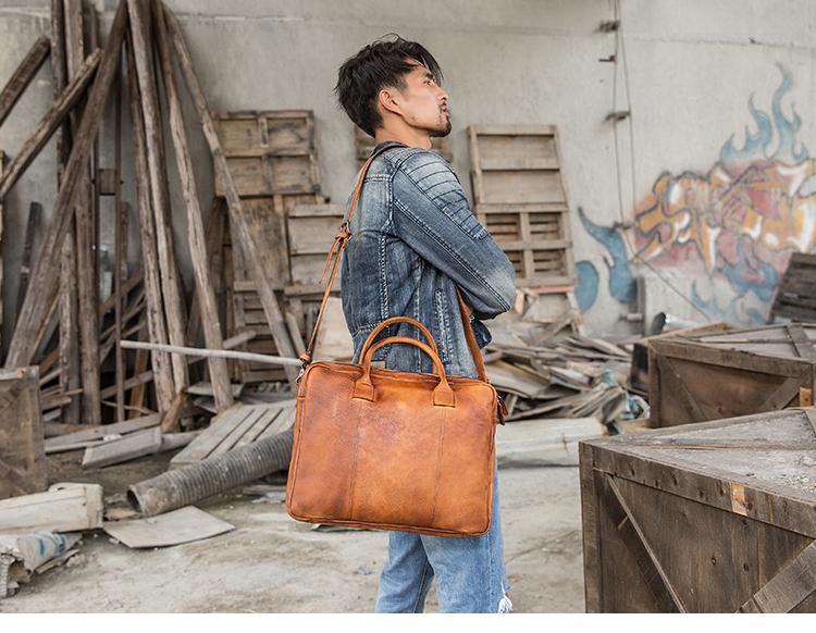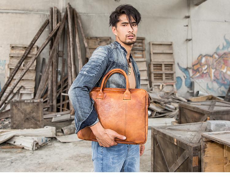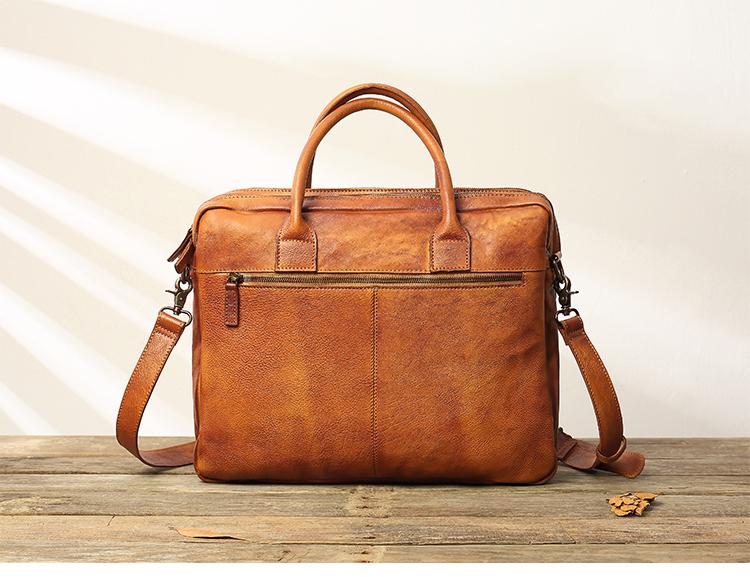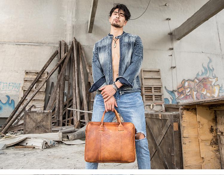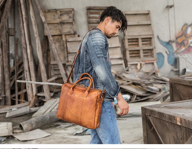 Design: Brown Leather Mens 14 inches Briefcase Work Bag Laptop Bag Business Bag for Men
