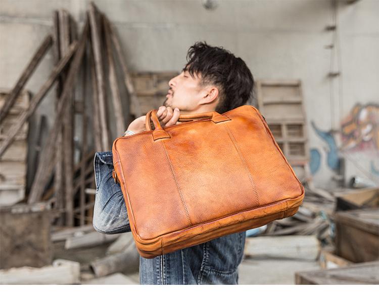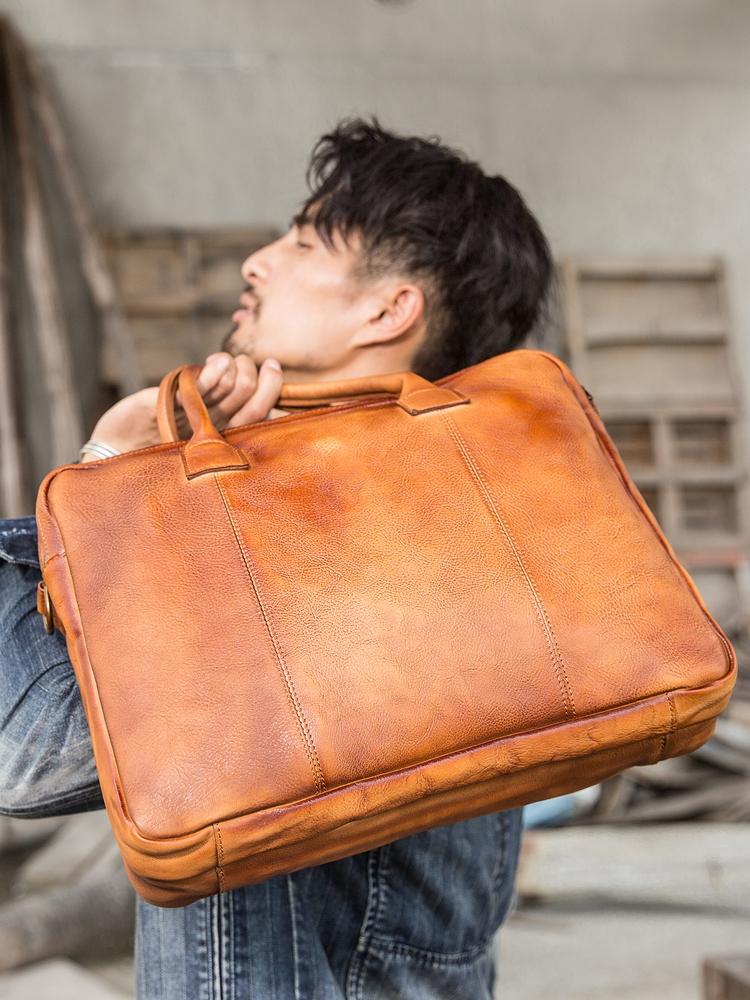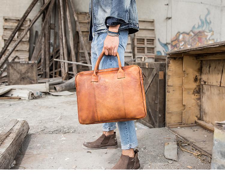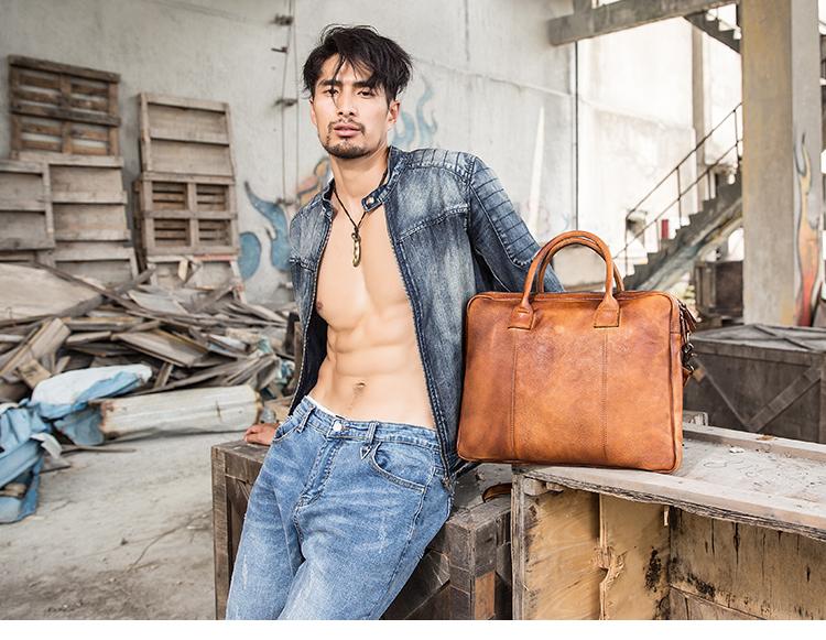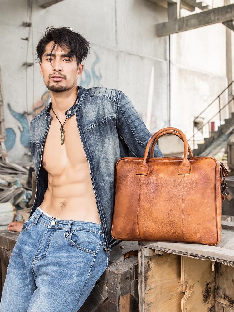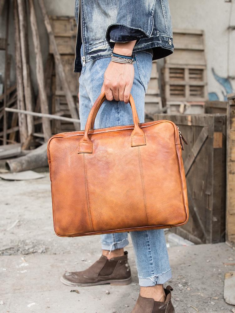 Design: Brown Leather Mens 14 inches Briefcase Work Bag Laptop Bag Business Bag for Men