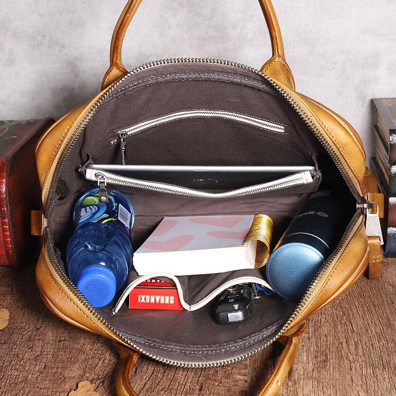 Design: Brown Leather Mens 14 inches Dark Gray Business Laptop Work Bag Handbag Briefcase Shoulder Bags Messenger Bags For MenOverview: