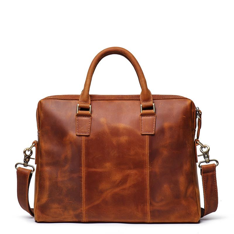 Design: Brown Leather Mens 15 inches Simple Laptop Work Bag Handbag Briefcase Shoulder Bags Business Bags For Men