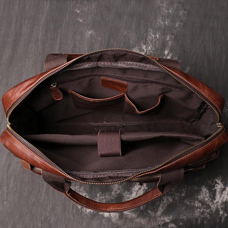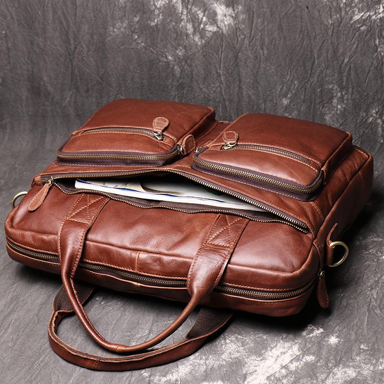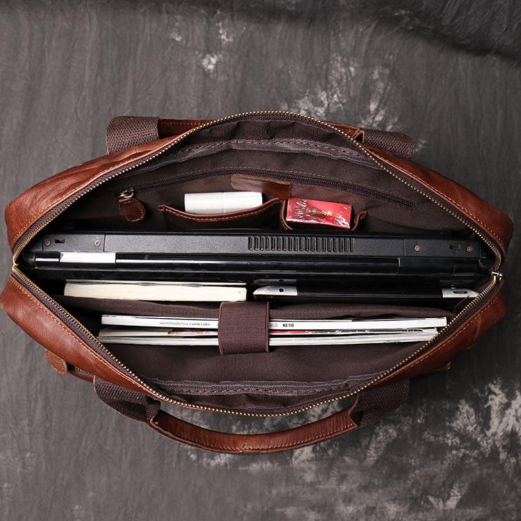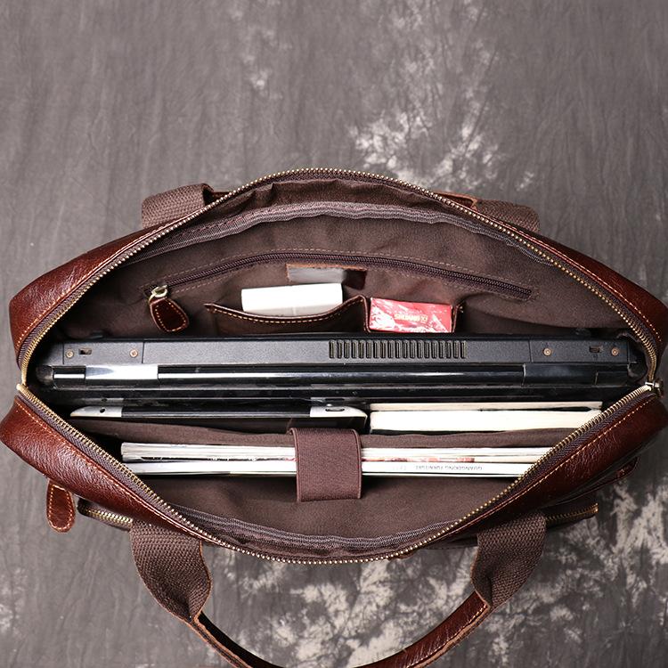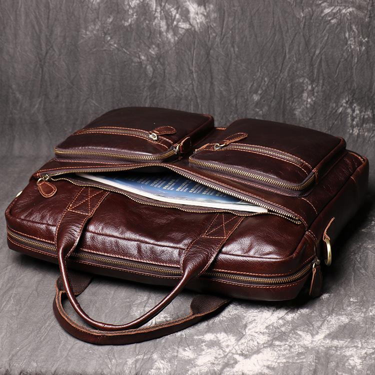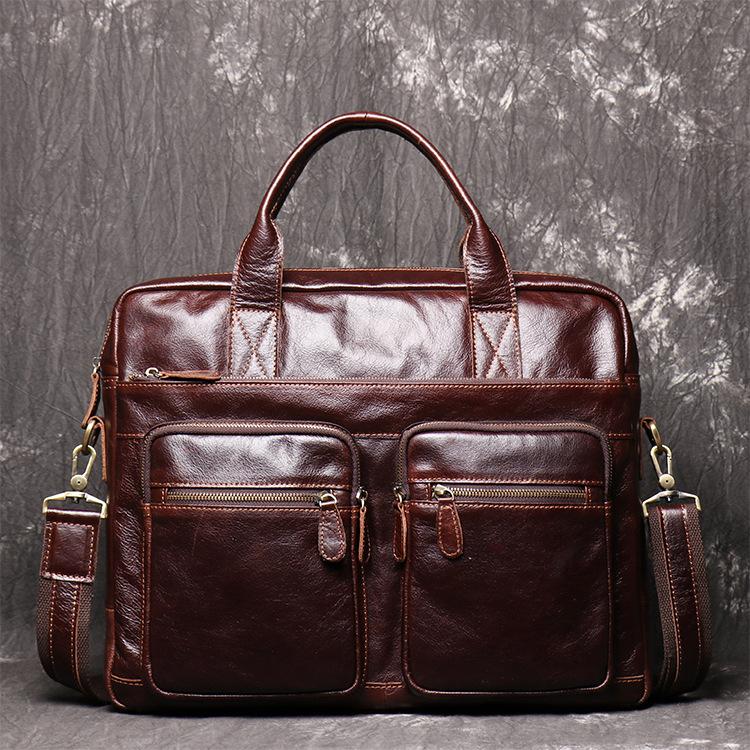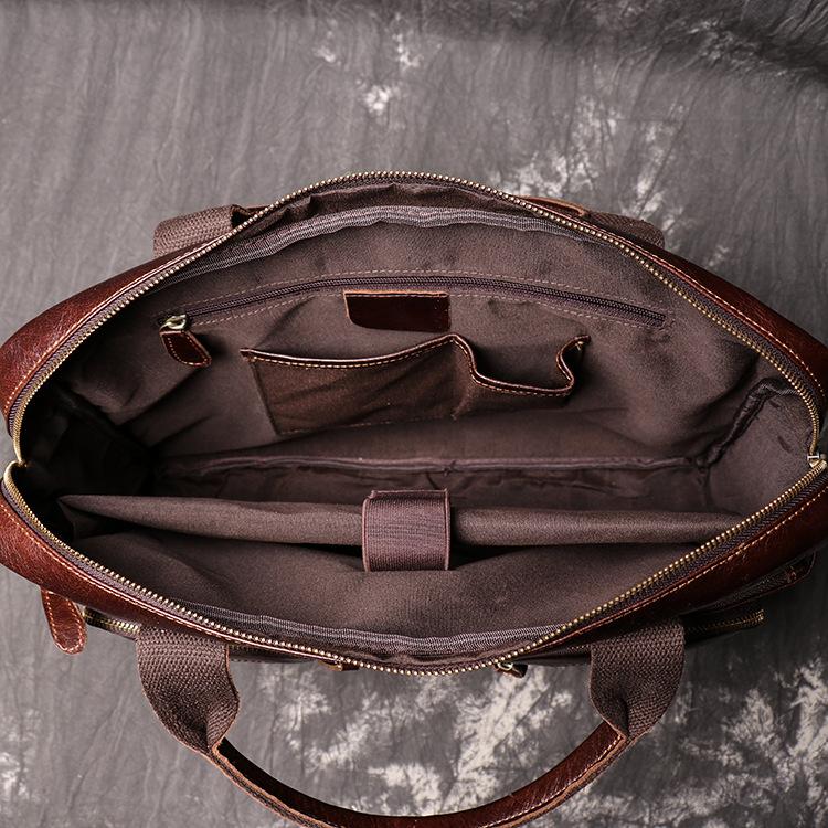 Design: Brown Oiled Leather Men's Red Brown Professional Briefcase 15‘’ Laptop Handbag Business Bag For MenOverview:
