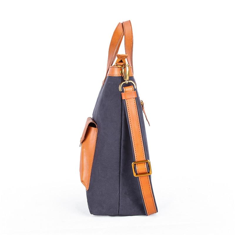Design: Canvas Leather Mens 14" Caramel Briefcase Bag Shoulder Bag Army Green Diagonal Bag for Men