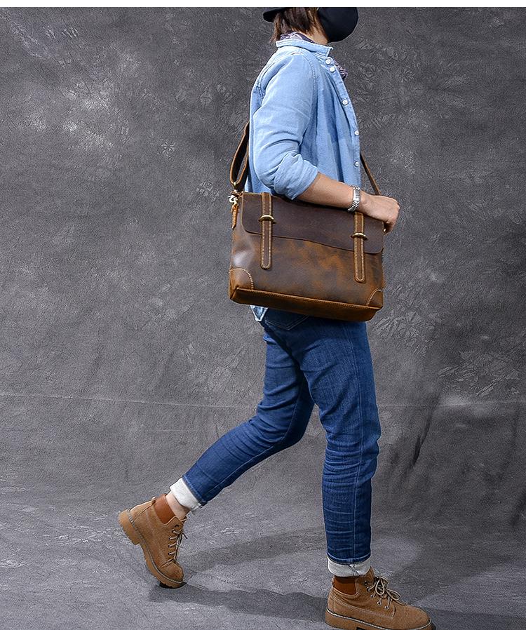 Style: Canvas Leather Mens Brown Briefcase 13'' Side Bag Messenger Bag Shoulder Bag For Men