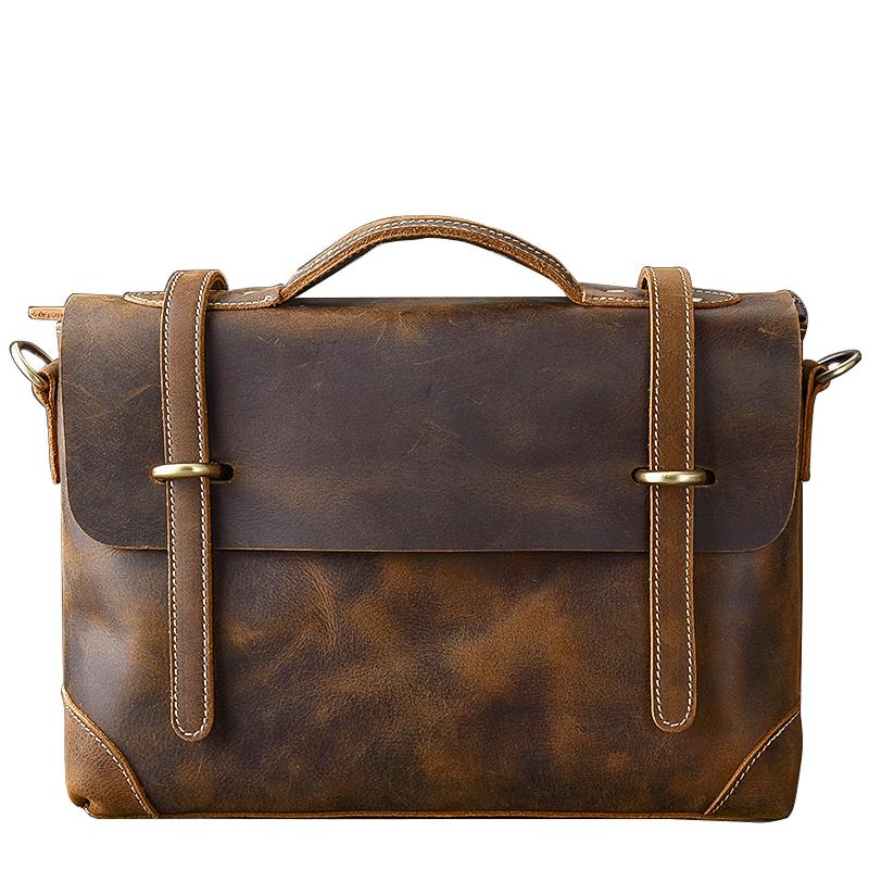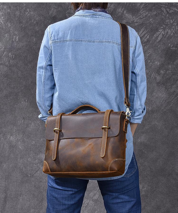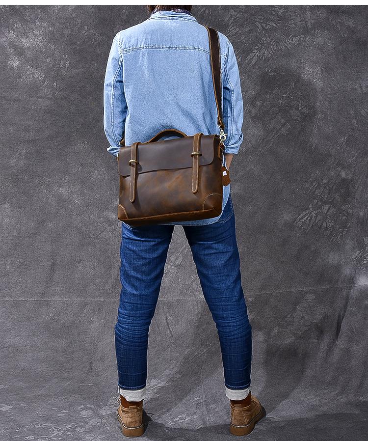 Design: Canvas Leather Mens Brown Briefcase 13'' Side Bag Messenger Bag Shoulder Bag For Men