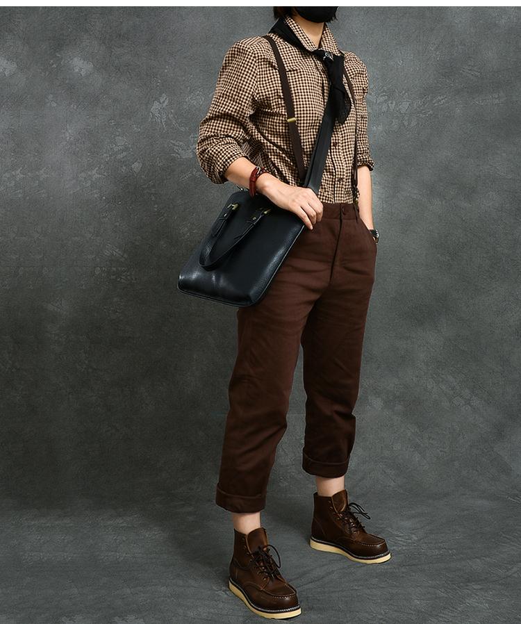 Style: Canvas Leather Mens Womens 16" Black Briefcase Side Bag Brown Messenger Bag Shoulder Bag For Men
