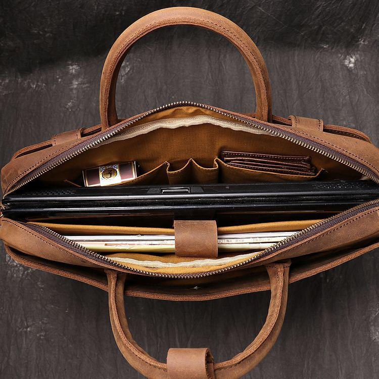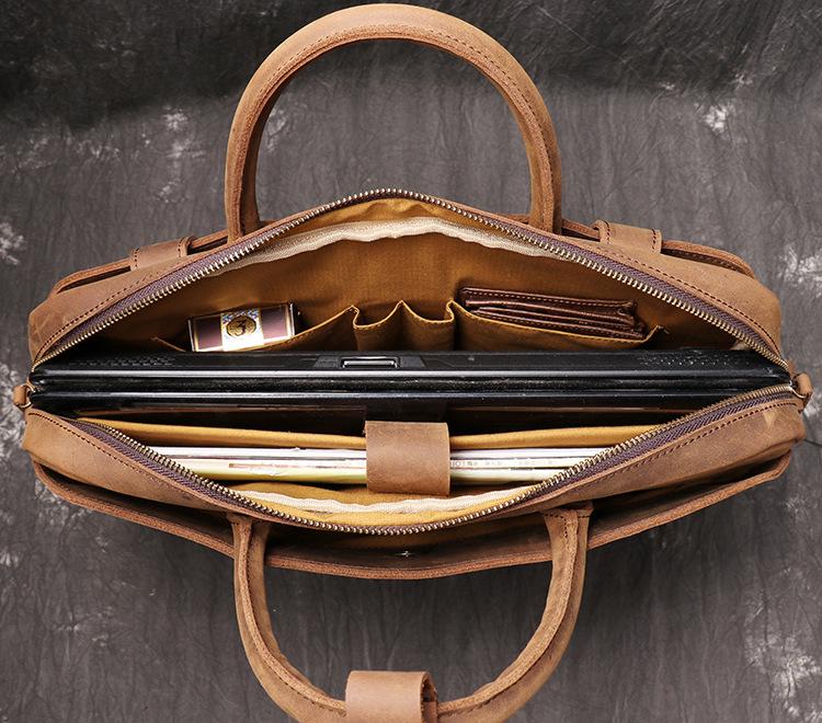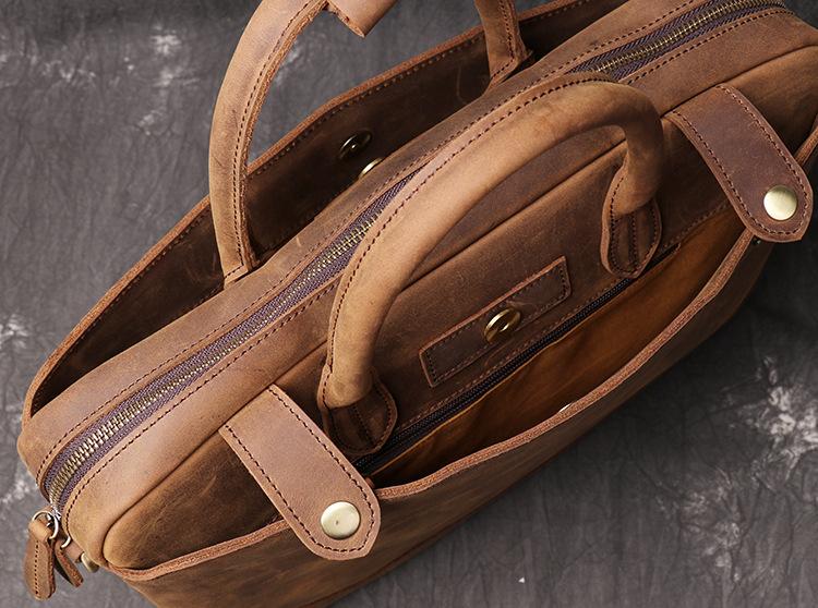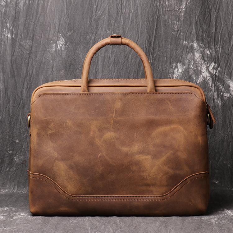 Vintage Leather Mens Briefcase Bag Work Bag Business Bag 15inch Computer Bag For Men